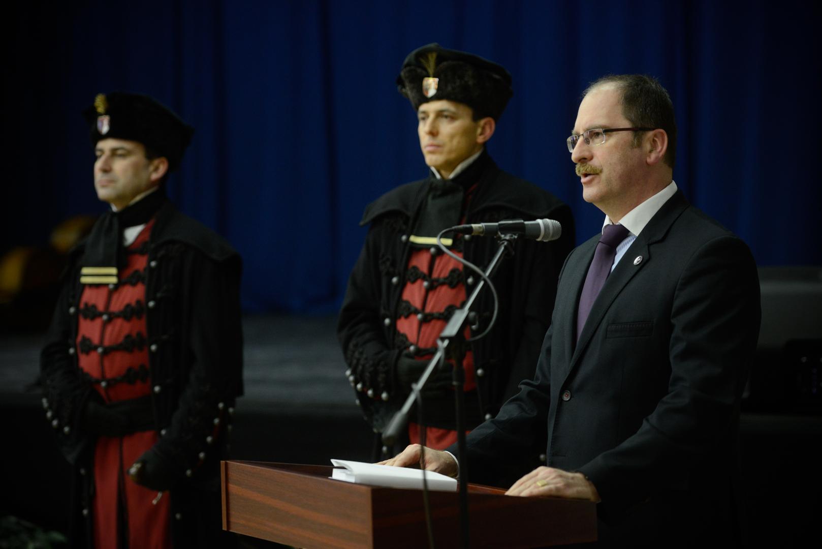 „Ez a nap messze túlmutat egy egyetemi szervezeti egység előtti tisztelgésnél” – fejtette ki Patyi András. Az ünnepségen egyaránt megemlékeztek Hadtudományi és Honvédtisztképző Karról, valamint a kari campus névadójáról, Zrínyi Miklós a téli hadjáratáról. „Egyszerre ünnepeljük Zrínyi Miklós személyét és kiemelkedően fontos haditettét. Ezen a napon ünnepeljük azt a feladatot, amit a honvédtisztképzés jelent egy ország életében. Azt a munkát, amelyet a hadtudomány művelése jelent a magyar tudományosság számára.” A rektor ismertette, hogy a HHK szilárd alapot jelentett az NKE megszületésében: a Zrínyi Miklós Nemzetvédelmi Egyetem doktori iskolái irányt mutattak a további közszolgálati doktori iskolák kialakítása során, továbbá a Ludovika átadásáig a HHK-n működhetett az egyetem központja. „A hadtudomány művelése – nehéz, forráshiányos időszakokban is - minden állam működésének alapvető feltétele” – mondta Patyi András, majd kifejtette, hogy ebben a munkában példakép számunkra Zrínyi Miklós. Rávilágított, hogy ő sokkal több volt, mint költő és hadvezér, munkássága alapvető tételeket rögzített a had-, a szervezés-, valamint a államtudományban egyaránt. „Zrínyi a legnagyobbjaink közt foglal helyet” – zárta gondolatát a rektor.