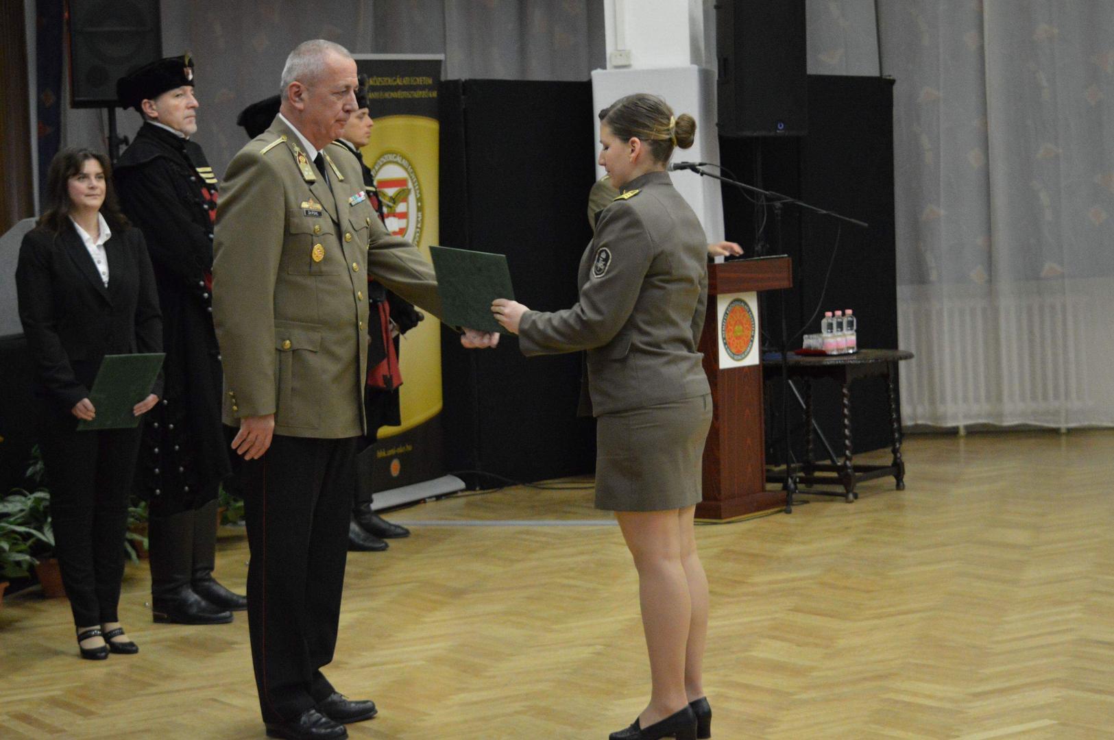 · Hallgatói elismerő oklevél - Pápics Patrik, Jánosi Dorina Andrea és Varga Viktória honvéd tisztjelöltek