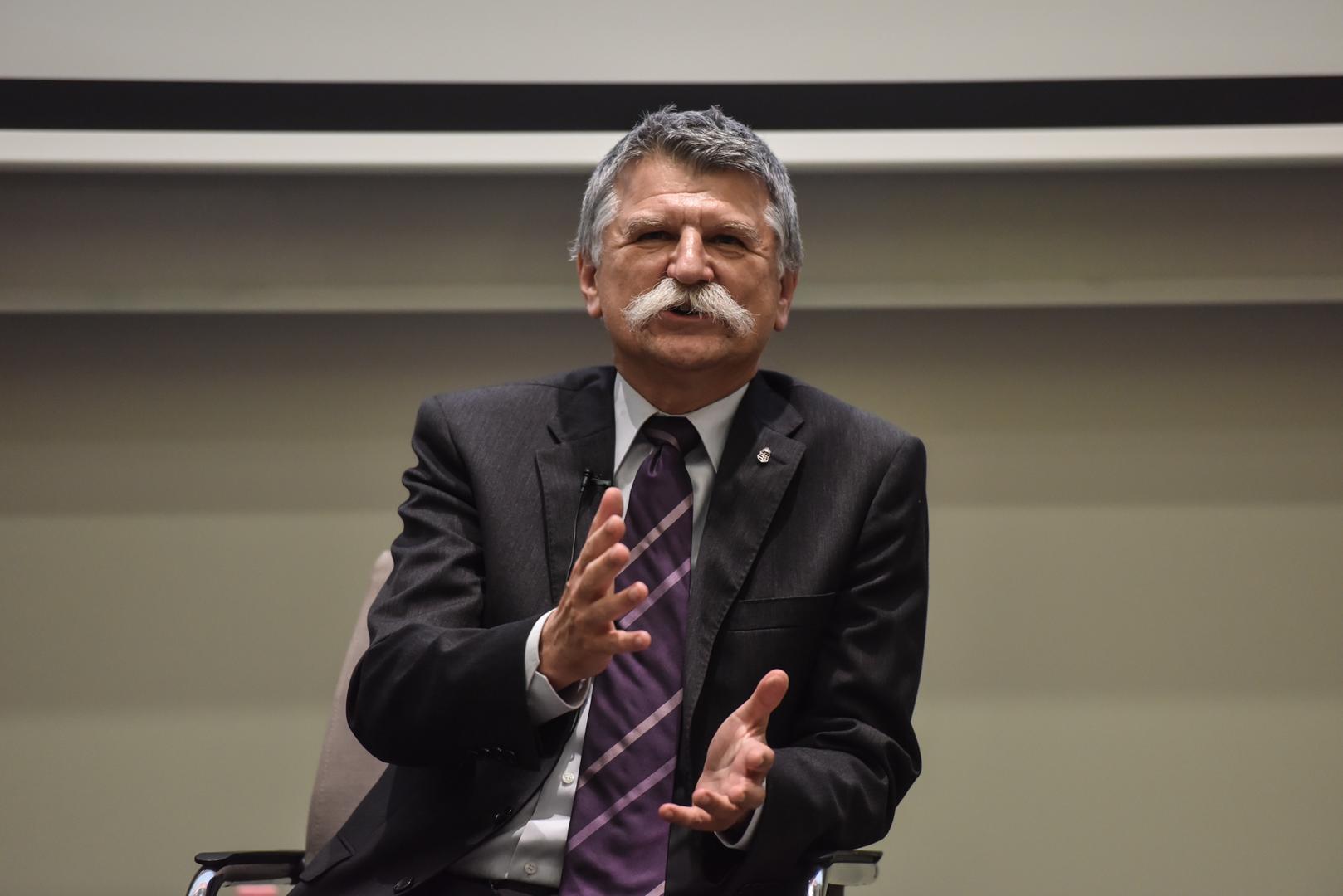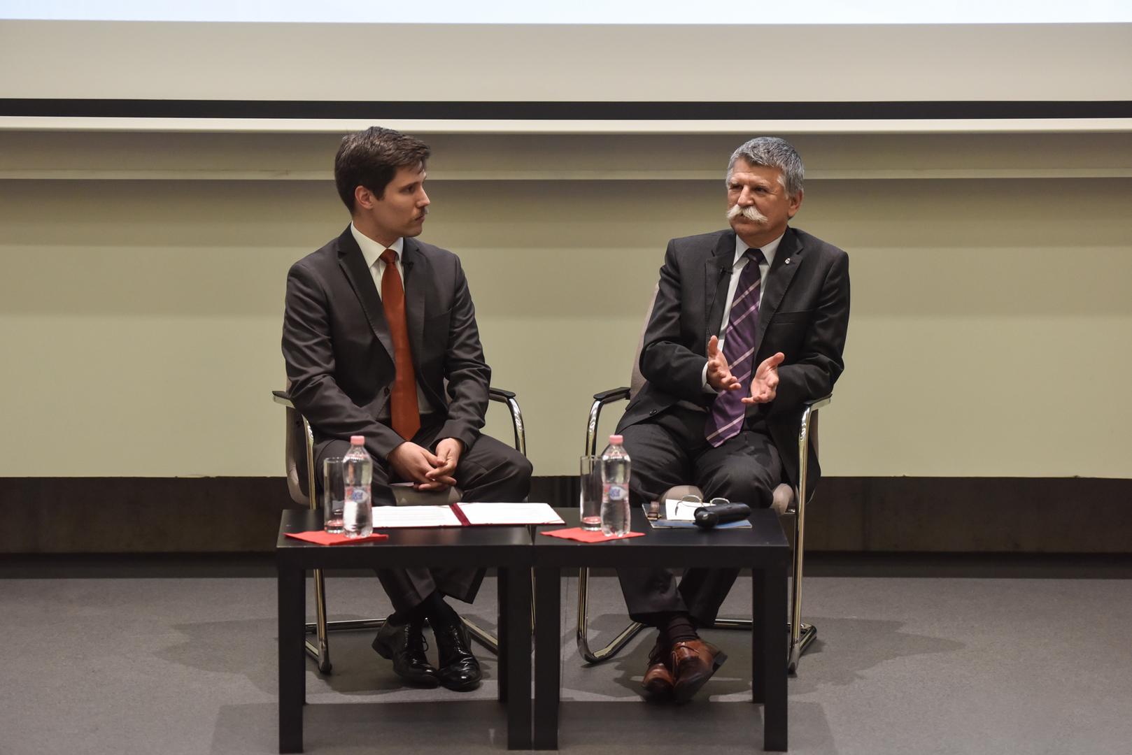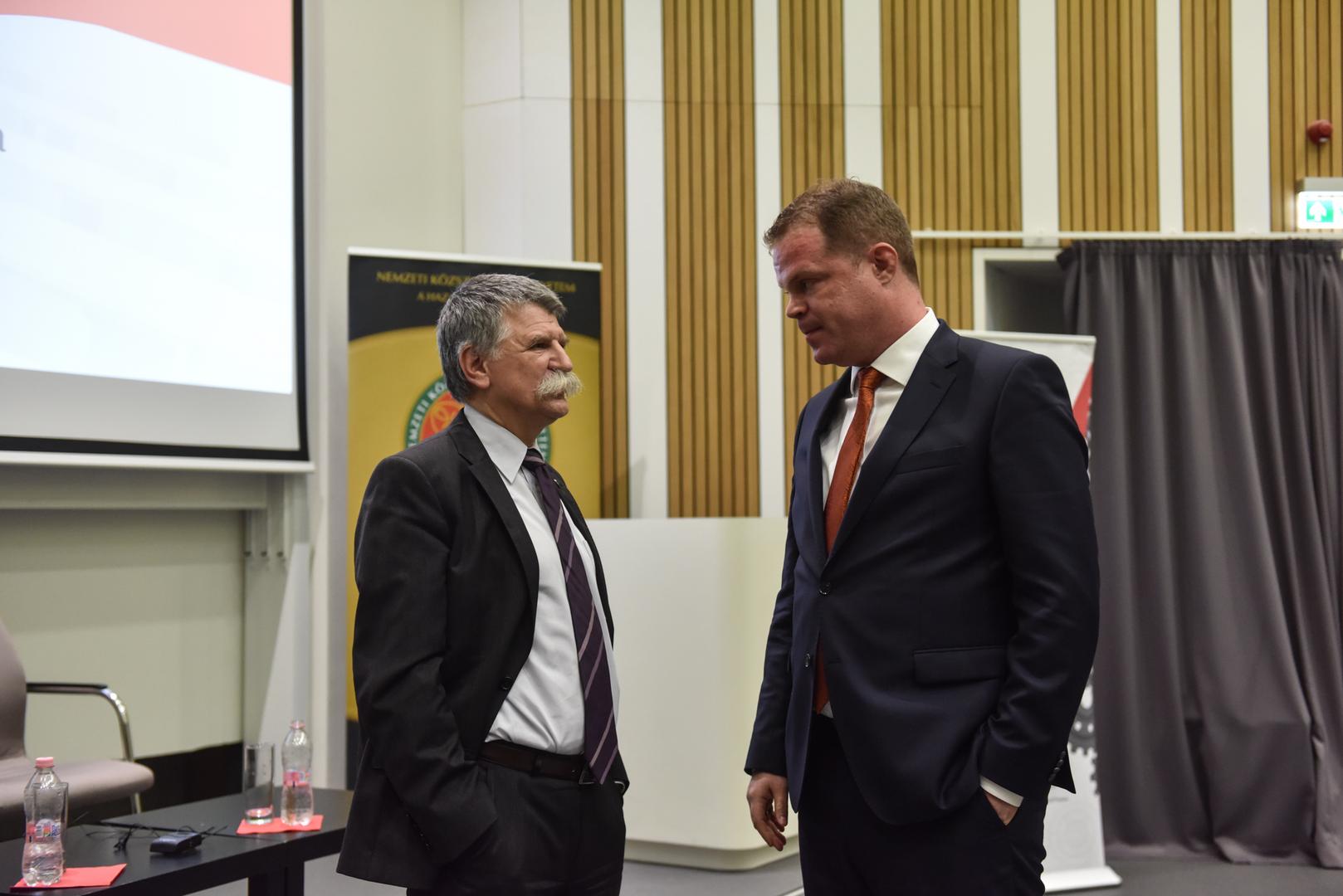 A beszélgetés után Kövér László kérdésekre is válaszolt. Mint mondta: jelenleg a világban az államok szuverenitását megtörő folyamatok zajlanak. Ennek nyomán az NKE jelenlegi hallgatóinak fontos üzenet: nagy küzdelem előtt állnak végzésük után, mert az állami szerveknél dolgozva úgy kell megvédeniük az ország függetlenségét, hogy azt mindenki befolyásolni akarja a világpolitikában.