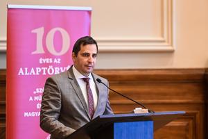 Impozáns szakmai tartalomnak nevezte az Alaptörvény tizedik születésnapjára készült ünnepi tanulmánykötetet Varga Judit igazságügyi miniszter. Mint mondta: az Alaptörvény egy míves, egyedi formában megalkotott norma, amelynek rendelkezései korszerűek és időtállók. Megalkotása társadalmi elvárásként jelent meg a politikum felé. Ezt 2010-ben megértette az akkor „soha nem látott felhatalmazást” kapott, választásokon győztes többség, akik felismerték az „alkotmányos pillanatot”, teljesítették történelmi küldetésüket és a rendszerváltozás zárómomentumaként megalkották hazánk új Alaptörvényét. A dokumentum utal a közös hazára, a magyar nemzet tagjait szimbolikusan összeköti, közös jogi és kulturális identitásunk hordozója – emelte ki Varga Judit, aki megállapította: az Alaptörvény Nemzeti hitvallásában „identitásképző keret” a közös haza, így az 1989-es Alkotmány helyébe egy összetartozást szimbolizáló Alaptörvény léphetett, amelyben kiemelt jelentőségű a határon túl élők sorsára való utalás. „Az alkotmányos identitás védelme az állam minden szervének kötelessége” – utalt a dokumentum fontos megfogalmazására Varga Judit, aki beszélt nemzeti szuverenitásunk legfőbb kihívásáról, az európai integrációról, amely az elmúlt évtizedben egyre kiemeltebb kérdéssé vált. Az Európai Unió (EU) és a nemzetállamok viszonyát ugyanis „a lopakodó hatáskörgyakorlás árnya terheli”. Az EU olyan jogot próbál alkotni, amely a szuverenitás sérelmét veti fel. Ezt egészíti ki az a törekvés, amely a nemzetállamok számára fontos kérdésekben a konszenzusos döntéshozatal helyett a többségi elvű felé próbál elmozdulni, ami Magyarország számára azt jelentené, hogy „a szuverenitást és identitást korlátozó vagy egyenesen sértő döntések születnek”, holott „az uniós csatlakozással hazánk nem a szuverenitásáról mondott le, csupán arról döntött, hogy az Alaptörvényből eredő egyes hatásköreit a többi tagállammal közösen, az Európai Unió intézményei útján gyakorolja”. „Magyarországtól belegyezése nélkül, egyoldalúan hatáskört elvonni nem lehet” – szögezte le Varga Judit, aki szerint az ünnepi tanulmánykötet számos problémát tár az olvasó elé a fenti tárgykörben.