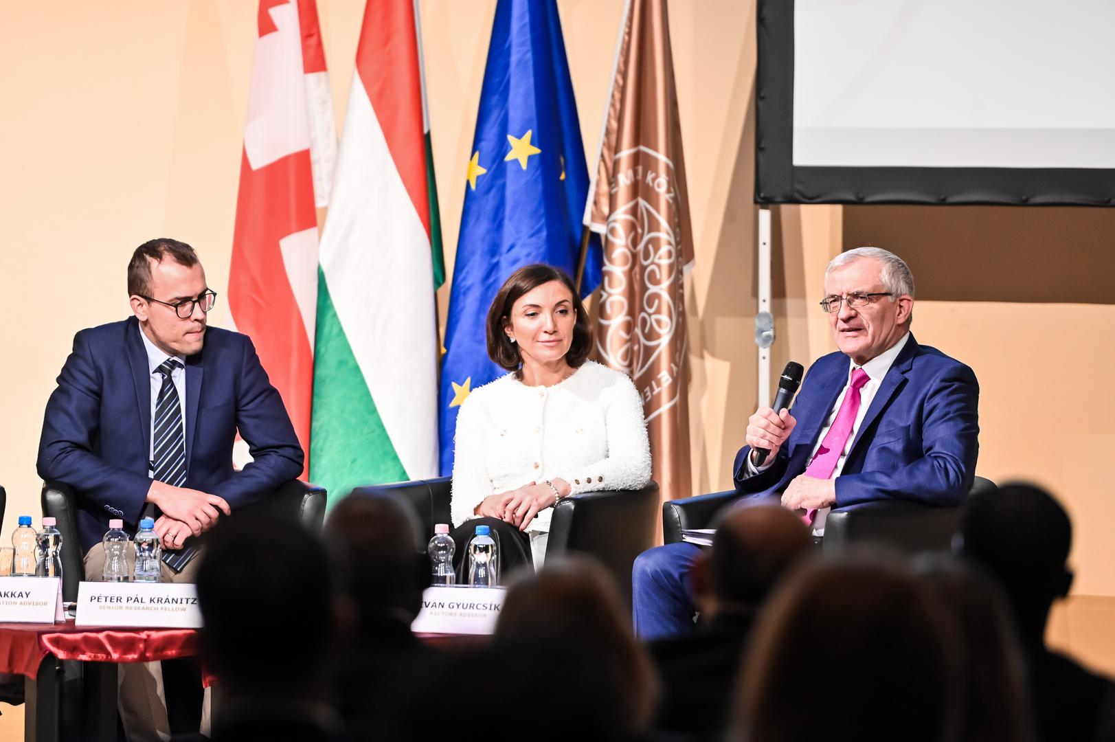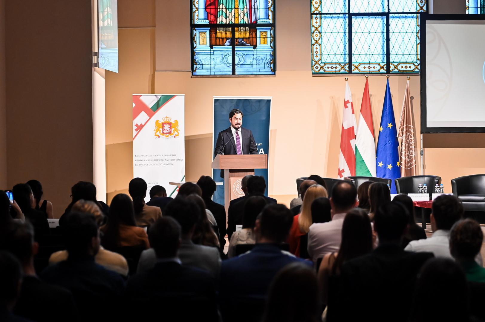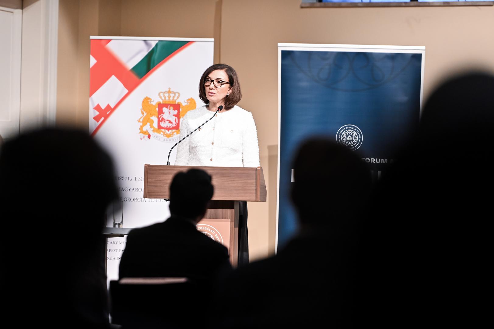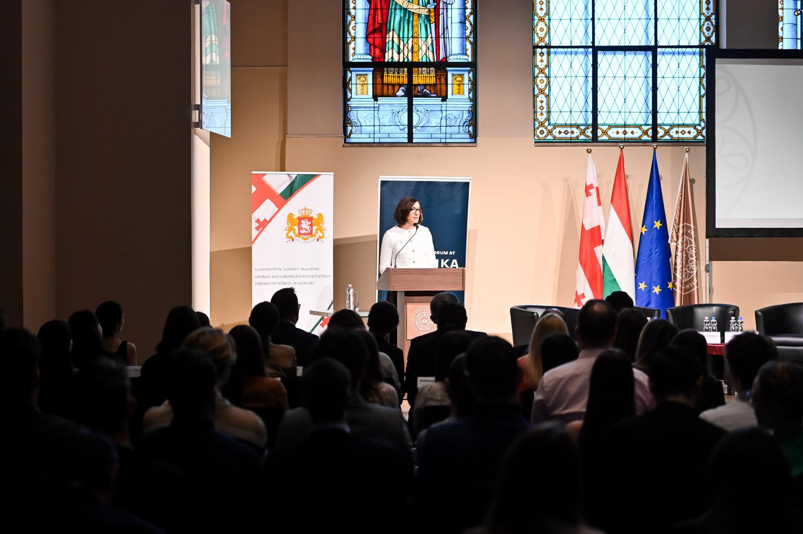 Tamara Liluashvili nagykövet előadásában elsőként a két ország – Georgia és Magyarország – közös értékeiről (szuverenitás, kereszténység), a kiváló kétoldalú kapcsolatokról szólt és arról, hogy hazánk a kezdetektől támogatja Georgia euroatlanti integrációját. Szólt a regionális helyzet adta lehetőségek kiaknázásáról is: az ország Európa és Ázsia metszéspontjában van, a kereskedelmi és energiaszállítási utak szempontjából meghatározó helyen. A szomszédos Azerbajdzsánnal, Örményországgal és Törökországgal stratégiai együttműködést kötöttek, és küszöbön áll a fekete-tengeri LNG-hez kötődő regionális megállapodás. Nincs alternatívája a konstruktív párbeszédnek – hangoztatta Tamara Liluashvili, hozzátéve: országa számára fontos a gazdasági szabadság és az üzletbarát környezet, valamint egy reziliens gazdaság kiépítése. E célkitűzést szem előtt tartva, prudens gazdaságpolitika révén az ország sikerrel kezelte a külső sokkokat. Jövőjét a konnektivitásra, a nemzetközi kereskedelem szempontjából stratégiai lokációjára, alternatív energiaútvonalak kiépítésére, és az energia- és élelmiszerbiztonság megteremtésére alapozza.