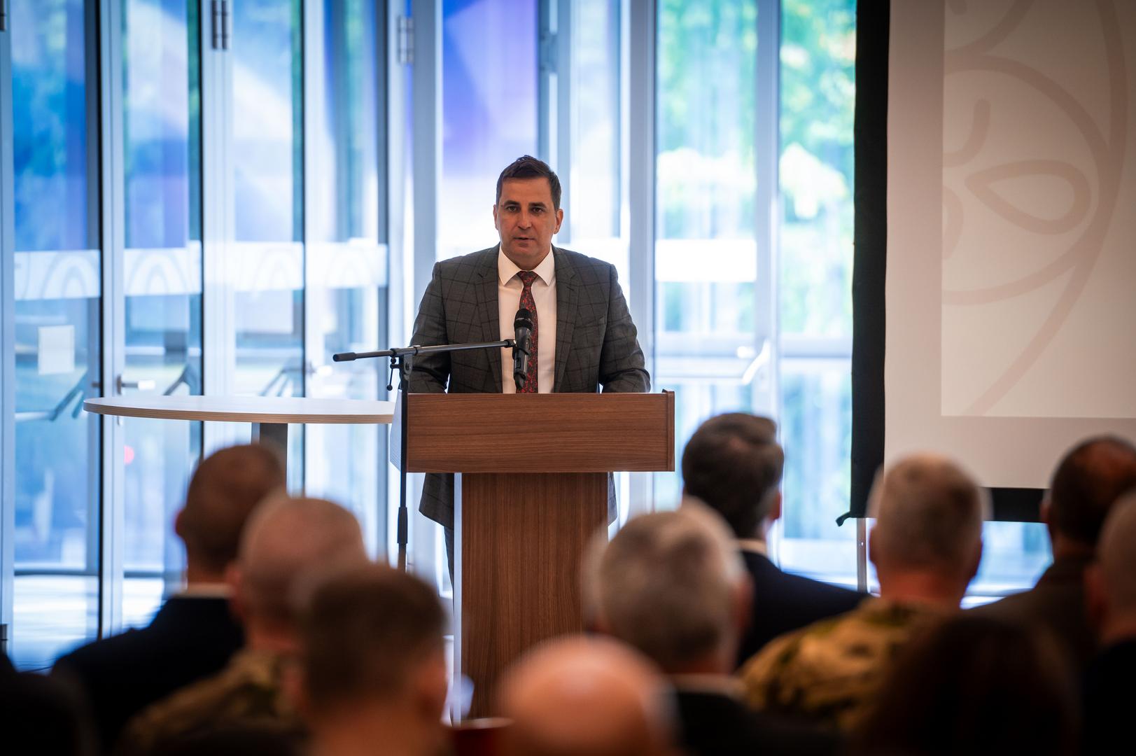 Deli Gergely, egyetemünk rektora köszöntőjében hangsúlyozta, hogy az NKE küldetése a közszolgálati hivatás, a tudományos kiválóság és a közjó szolgálata köré épül, stratégiájában pedig hangsúlyos szerepet kap a jelenkori kihívásokra válaszoló tudományos kapacitás hasznosítása. Jelen rendezvényen a látogatók olyan területekkel ismerkedhetnek meg, mint a vízbiztonság, kiberbiztonság, 3D-nyomtatás, drónfejlesztés, virtuális valóság, valamint a katonai térképészet és határvédelem. A rektor hozzátette: az esemény a hallgatók számára is kiemelt jelentőségű, mivel lehetőséget nyújt a korszerű tudás megszerzésére, gyakornoki programokkal és karrierlehetőségekkel való megismerkedésre, elősegítve, hogy tanulmányaik befejezését követően magasan képzett, gyakorlatorientált szakemberekké váljanak. Deli Gergely kiemelte, hogy az Innovációs Nap nemcsak szakmai, hanem közösségi élményt is kínál, és reményét fejezte ki, hogy a rendezvényen születő ötletek és kapcsolatok hosszú távon is jelentős hatással lesznek az egyetem és partnerei számára, hiszen a kezdeményezés elsődleges célja a kapcsolatépítés, valamint, hogy az érdeklődők megismerjék Magyarország védelmi, biztonságpolitikai, innovációs és vízügyi stratégiájának aktualitásait, továbbá az NKE fejlesztési tevékenységét, alkalmazott kutatásait.