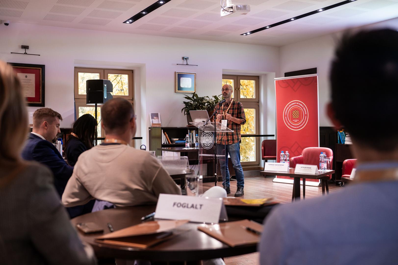 A konferenciát Falyuna Nóra, a Tudomány és Társadalom Kutatócsoport vezetője, nyitotta meg, aki üdvözölte a résztvevőket, majd Bartóki-Gönczy Balázs, a Nemzeti Közszolgálati Egyetem Államtudományi és Nemzetközi Tanulmányok Karának tudományos dékánhelyettese köszöntőjében a Tudomány és Társadalom Kutatócsoport tevékenységét méltatta, kiemelve, hogy ez a csoport negyedik rendezvénye, amely nemzetközi résztvevőkkel vizsgálja az MI kulturális és demokratikus hatásait. Hangsúlyozta, hogy a félretájékoztatás korszakában, ahol a bizalom és az igazság megkérdőjeleződik, a konferencia témája – a közbeszédet aláásó összeesküvés-elméletek és a társadalmi polarizáció – kiemelten fontos. A rendezvény alkalmat adott Fehér Katalin Társadalom és Technológia című, a Taylor & Francis kiadó gondozásában megjelent könyvének magyarországi bemutatására, amely a generatív MI társadalmi hatásait elemzi.
