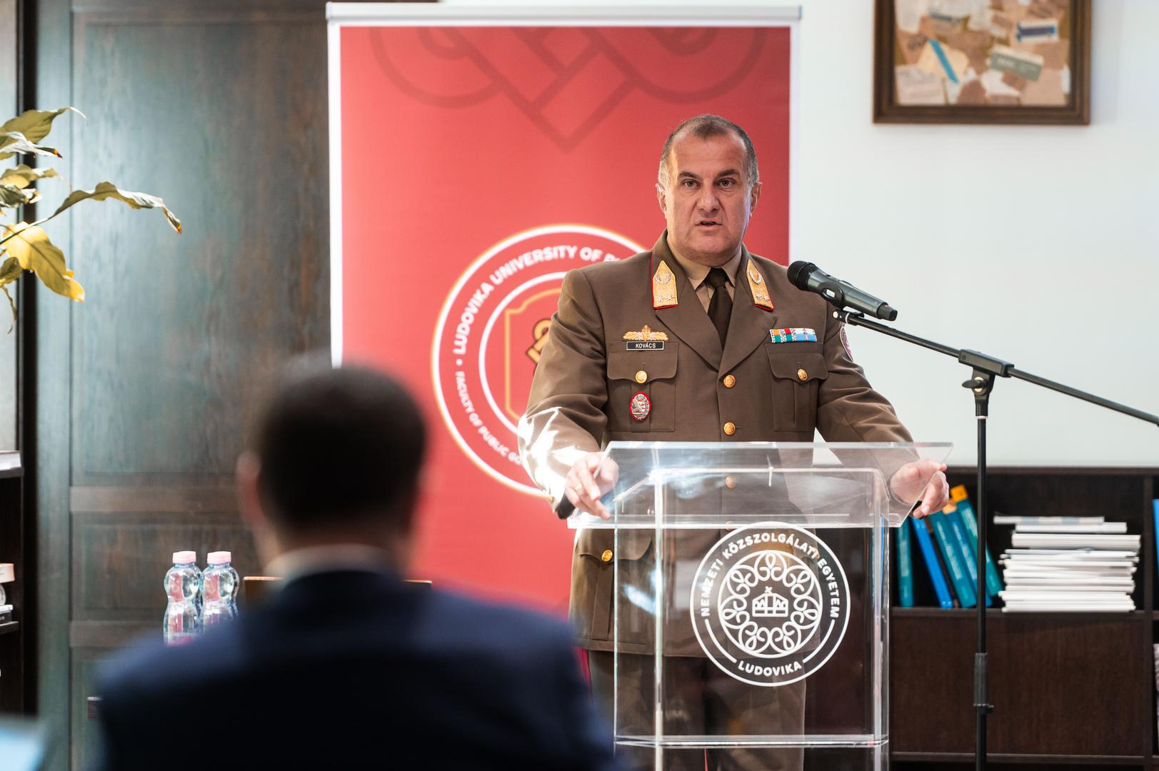 Az esemény megnyitóján Kovács László vezérőrnagy, az NKE tudományos rektorhelyettese, a Kiberbiztonsági Kutatóintézet vezetője üdvözlő beszédében elsőként az egyetem egyediségét emelte ki. A köz szolgálatát választó hallgatókat képző egyetemen több, mint egy évtizede kezdődtek meg a kiberbiztonsági kutatások, a rektorhelyettes maga eközben éles tapasztalatokat is szerzett e területen a honvédség kötelékében. Kovács László kiemelte, a szomszédunkban jelenleg is zajló háború még inkább megerősítette a trendet, hogy a katonaság együttműködik a kibertér védelmében a civil szférával. E csatatér ugyanis szinte a legfontosabb területe lett a konfliktusoknak, elég, ha csak a kritikus infrastruktúrák védelmére gondolunk. Az ilyen konferenciák remek lehetőséget teremtenek a kapcsolatépítésre is, például a Kiberbiztonsági Kutatóintézetben folyó kutatások megismerésére, azok gazdagítására – zárta beszédét a rektorhelyettes.