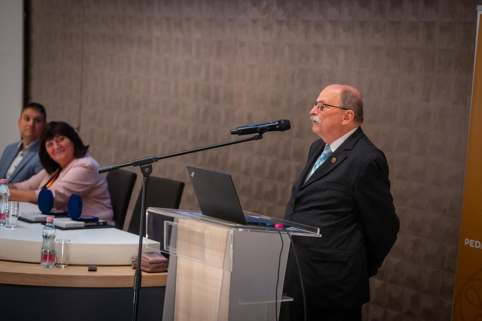 Béres Gábor, a Neumann János Egyetem GAMF Műszaki és Informatikai Karának tudományos dékánhelyettese is köszöntötte a résztvevőket, hangsúlyozva: „Az oktatásban mindig az a kérdés, hogyan tudunk mást, újat tenni, amit korábban nem.” Ehhez kívánt mindenkinek sikeres és inspiráló konferenciát.