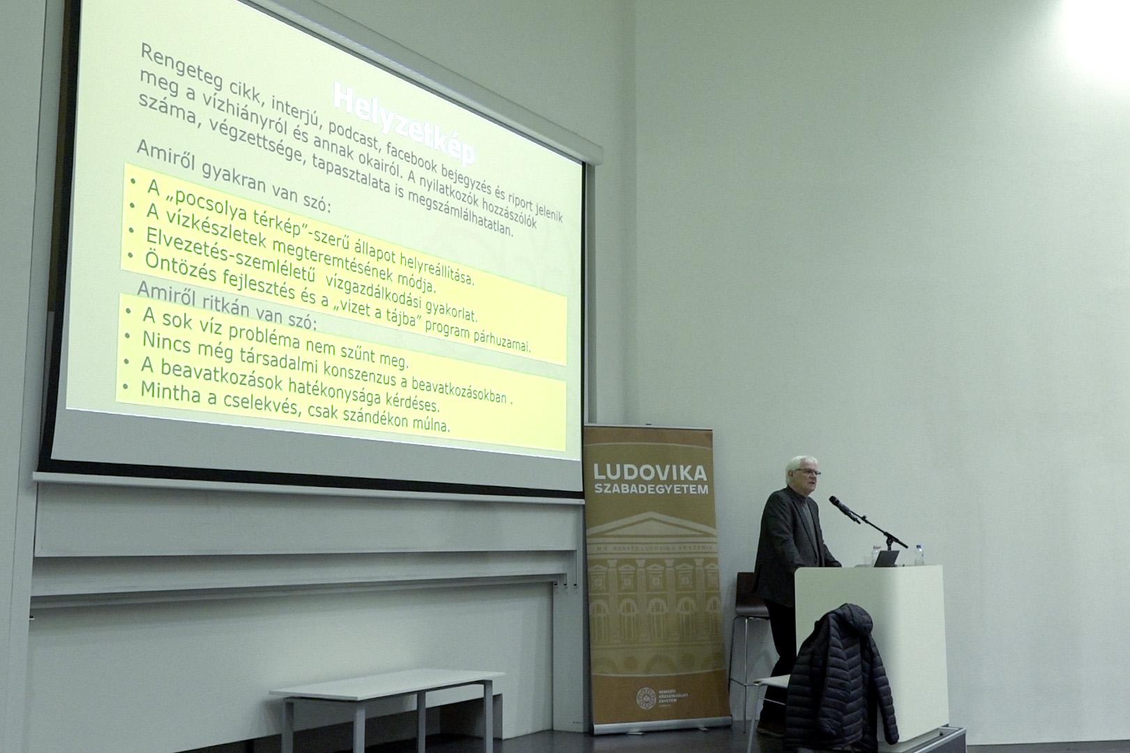 A víz eltárolásának képességét az egyik legjelentősebb emberi találmányként érdemes kezelni – hangzott el a Ludovika Szabadegyetem 2025/2026-os őszi szemeszterének legutóbbi előadásán, november 4-én, a Nemzeti Közszolgálati Egyetem (NKE) Oktatási Központjában, ahol Vizet a tájba! címmel Váradi József, az Energiaügyi Minisztérium Vízügyi Tudományos Tanácsának elnöke, a Magyar Hidrológiai Társaság társelnöke adott elő.