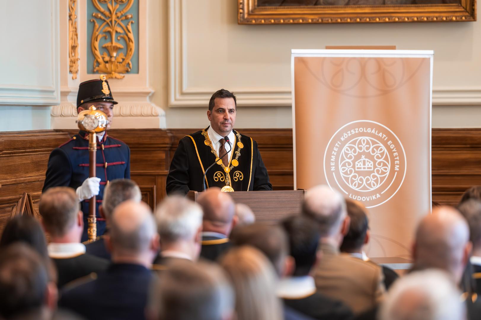 „Az avatási ünnepség mindig jeles alkalom, ám az idei különösen ünnepélyes, hiszen kétszáz éve annak, hogy Széchenyi István felajánlotta birtokai egyévi jövedelmét a Magyar Tudományos Akadémia megalapítására” – emelte ki beszédében Deli Gergely rektor, hozzátéve, hogy ez a nemes tett indította el azt a két évszázados folyamatot, amely a tudást és a társadalom szolgálatát helyezi középpontba. Mint fogalmazott, a tudás mélységében rejlik egy nemzet igazi hatalma⁏ Széchenyi felismerte, hogy a felemelkedés nem a hatalom nagyságán, hanem a tudomány és a műveltség erején múlik. „A tudomány akkor a nemzeti újjászületés záloga volt, ma pedig a megtartó erő, amely biztos alapot ad a jövőnek, a közösség biztonságának és fejlődésének” – emelte ki Deli Gergely. A rektor hangsúlyozta, hogy a Nemzeti Közszolgálati Egyetem számára a tudomány nem csupán szellemi munka, hanem felelősség és küldetés: a megismerés, az ismeretszerzés és a szolgálat egysége. Az avatott doktorokhoz szólva, Deli Gergely úgy fogalmazott: nemes feladatot vállaltak azzal, hogy a tudományos pályát választották⁏ a tudományos fokozat megszerzése ugyanis egyszerre lezárás és új kezdet, e mellett a tudomány, a fejlődés és a tanulás örök folyamat, amely elhivatottságot, kitartást és alázatot kíván. A beszéde végén a rektor köszönetet mond az oktatóknak, a témavezetőknek, a hozzátartozóknak és mindazoknak, akik támogatták az avatandókat tudományos munkájuk során.
