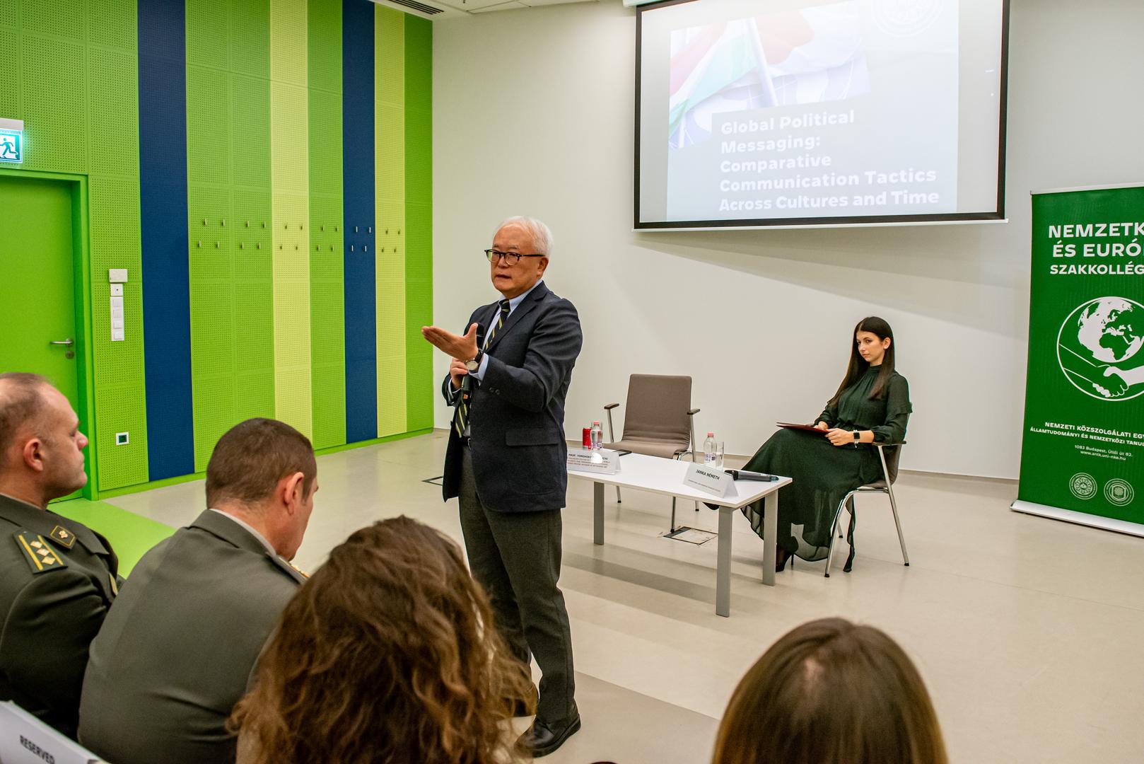 Világméretű politikai üzenetváltás: különböző kultúrák és korszakok kommunikációs taktikáinak összevetése címmel adott elő Tomohiko Taniguchi professzor, a Ludovika Public Diplomacy Hub (LPDH) kiemelt vendégkutatója november 12-én, az egyetem Orczy Úti Kollégiumában.