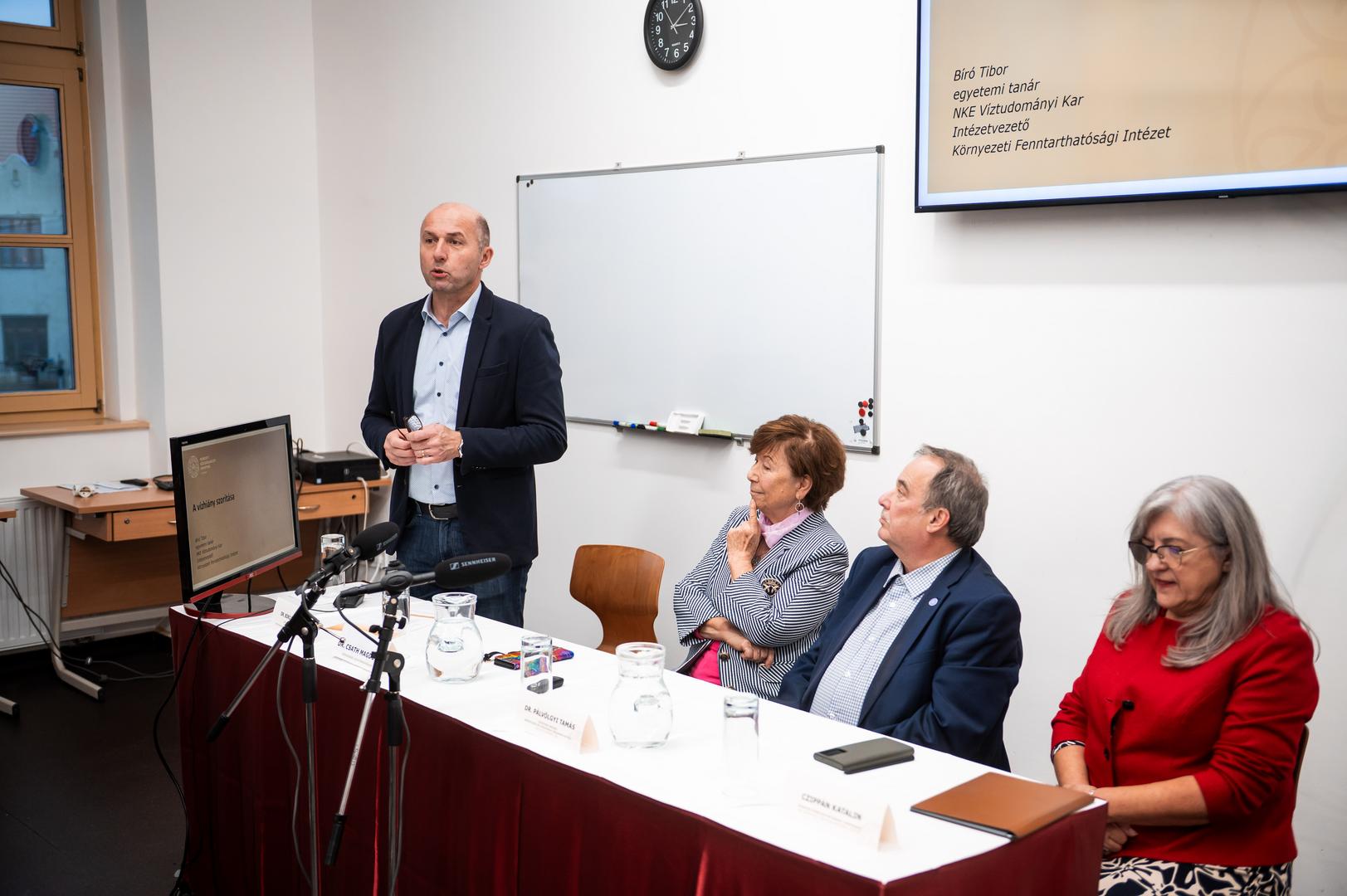 Bíró Tibor, a KFI intézetvezetője és Pálvölgyi Tamás, az NKE Víztudományi Karának nemzetközi és stratégiai dékánhelyettese az aszály, a vízhiány szorítása és a klímaváltozás témakörében fejtették ki gondolataikat. Bíró Tibor hosszútávon fenntarthatatlannak tartja, hogy a gazdálkodók térítésmentesen jutnak vízhez akkor, amikor kimerülőben vannak a vízkészletek és sorozatban nézünk szembe a hidrológiai aszályokkal. Ez nem ösztönöz takarékos vízhasználatra. Mindeközben a szennyvizek újrahasznosítása és a csapadékvizek gyűjtése, felhasználása gyerekcipőben jár.