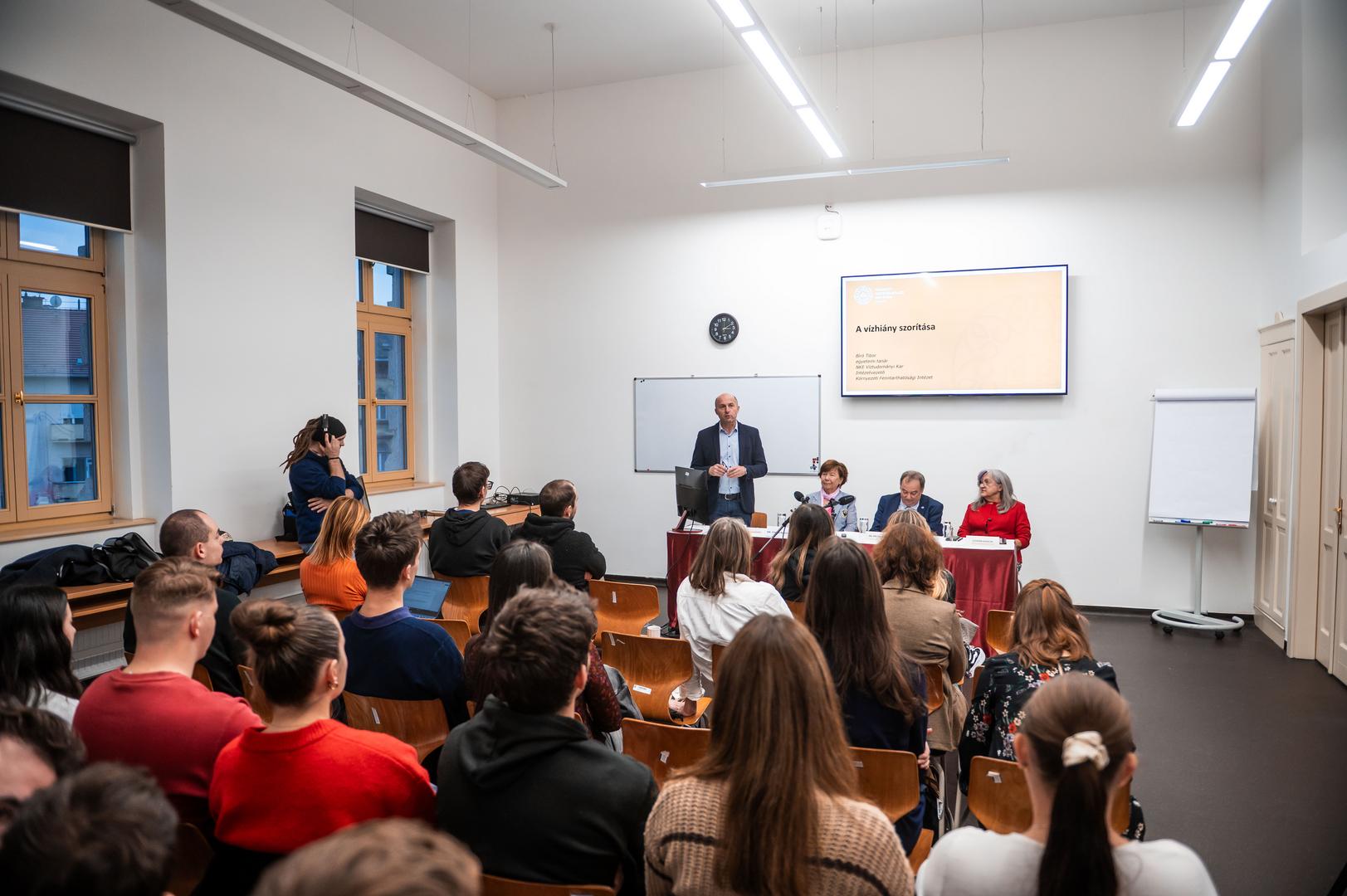 Pálvölgyi Tamás a hőmérsékleti anomáliák kapcsán felidézte a 16. századi jégkorszakot, amikor globálisan egy Celsius-fokot esett az átlaghőmérséklet. Erre akkor válaszképpen spontán alkalmazkodás történt, ennek példája Anglia, ahol a szántóföldeken nem érett be a gabona, ezért juhtenyésztésbe kezdtek vagy a sikertelen szüret miatt borkészítés helyett sörre váltottak. Vajon milyen ma a rezilienciánk, mennyire lennénk, vagyunk képesek egy ehhez hasonló alkalmazkodásra, váltásra? – tette fel a kérdést a dékánhelyettes.