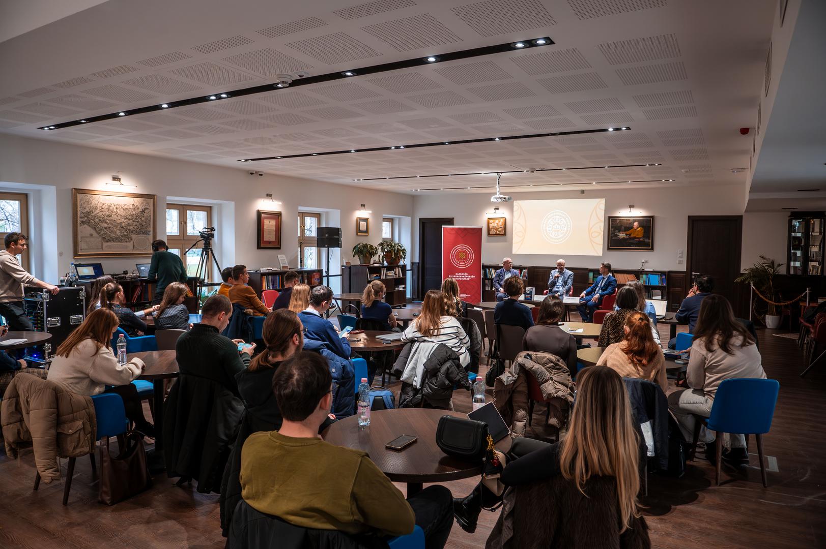 A Nemzeti Közszolgálati Egyetem (NKE) Gazdaság és Versenyképesség Kutatóintézete (GVKI) és a Magyar Közgazdasági Társaság Visszavehetjük-e az ellenőrzést a saját pénzünk felett? – Beszélgetés a szuverén nemzeti pénz lehetőségeiről és kockázatairól címmel szervezett eseményt december 3-án, az NKE John Lukacs Társalgójában.