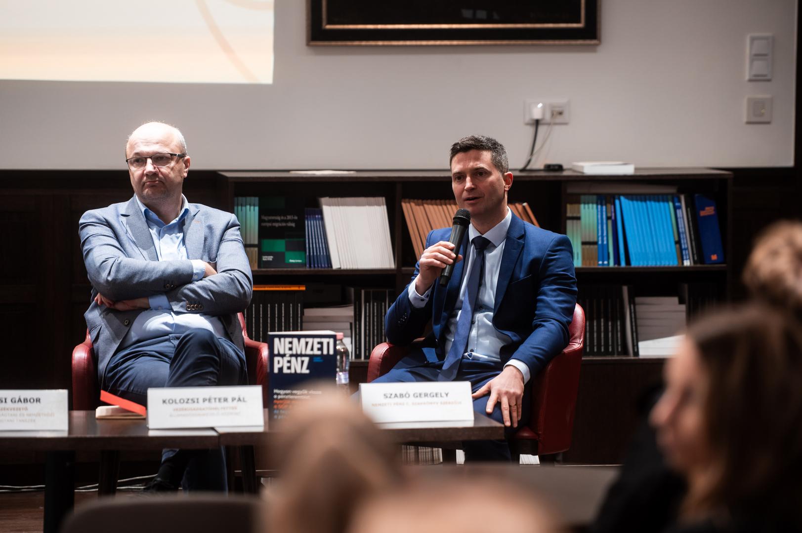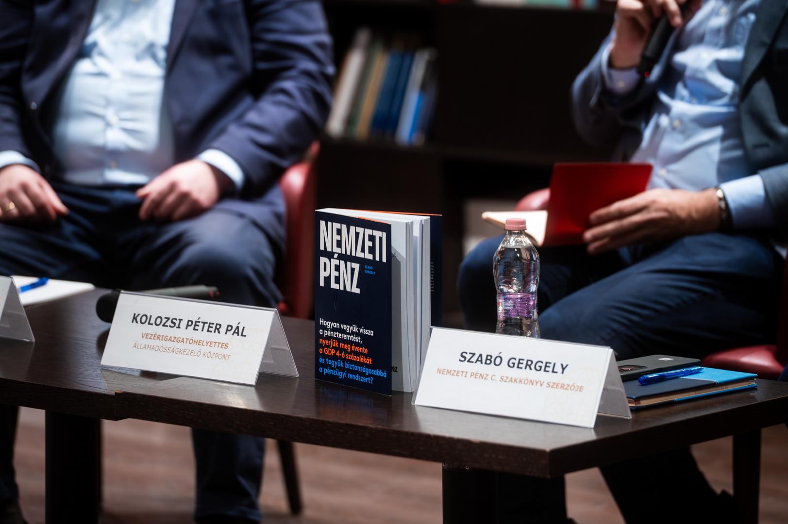 Kolozsi Pál Péter, az Államadósság Kezelő Központ vezérigazgató-helyettese, az MKT Pénzügyi Szakosztályának elnöke, a beszélgetés moderátora elmondta, hogy a diskurzus célja Szabó Gergely közgazdász Nemzeti Pénz című könyvében felvázolt pénzreform-koncepció megismertetése és megvitatása, különös tekintettel az esetleges átváltásokra (tradeoff-okra), vagyis arra, hogy milyen feltételezéseket kell elfogadnunk, vagy mit kell feláldoznunk a rendszer várható előnyeiért.