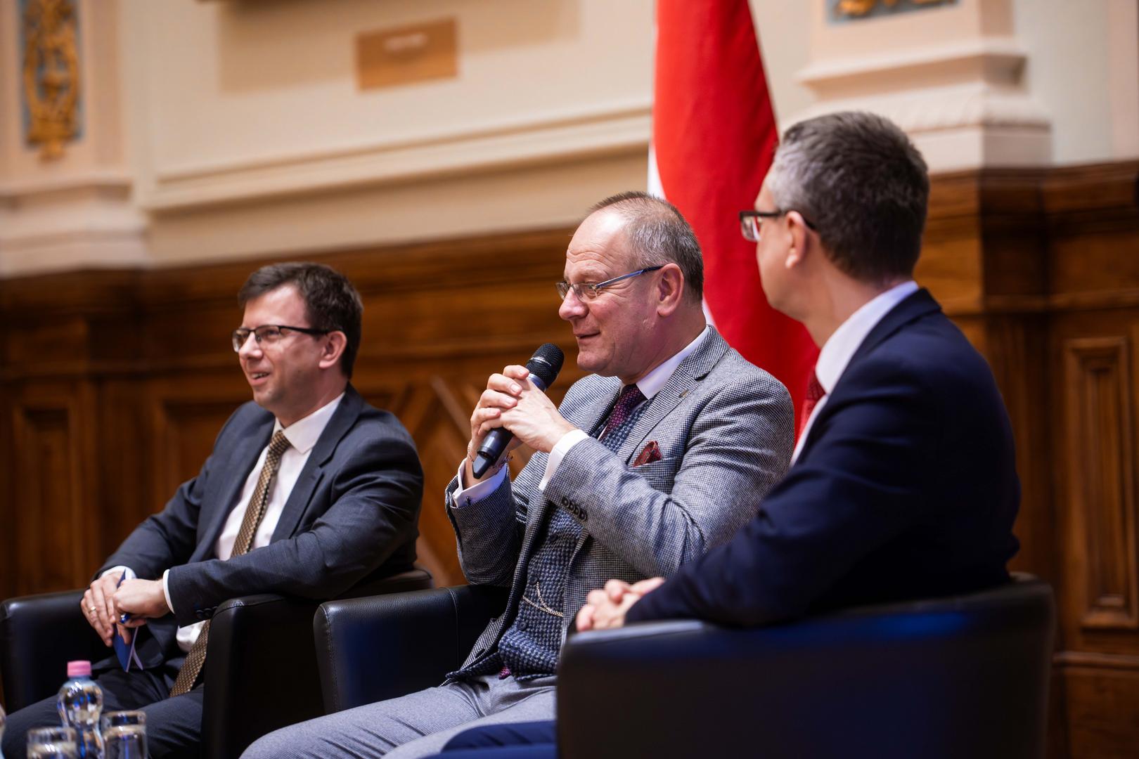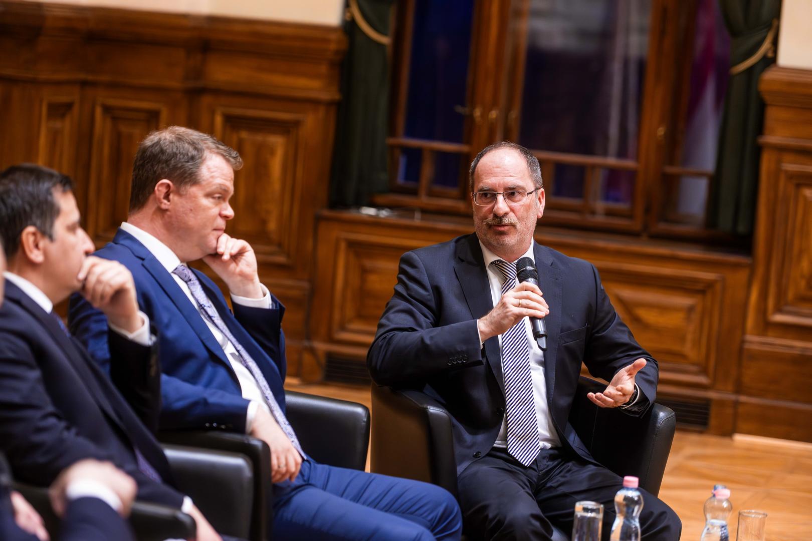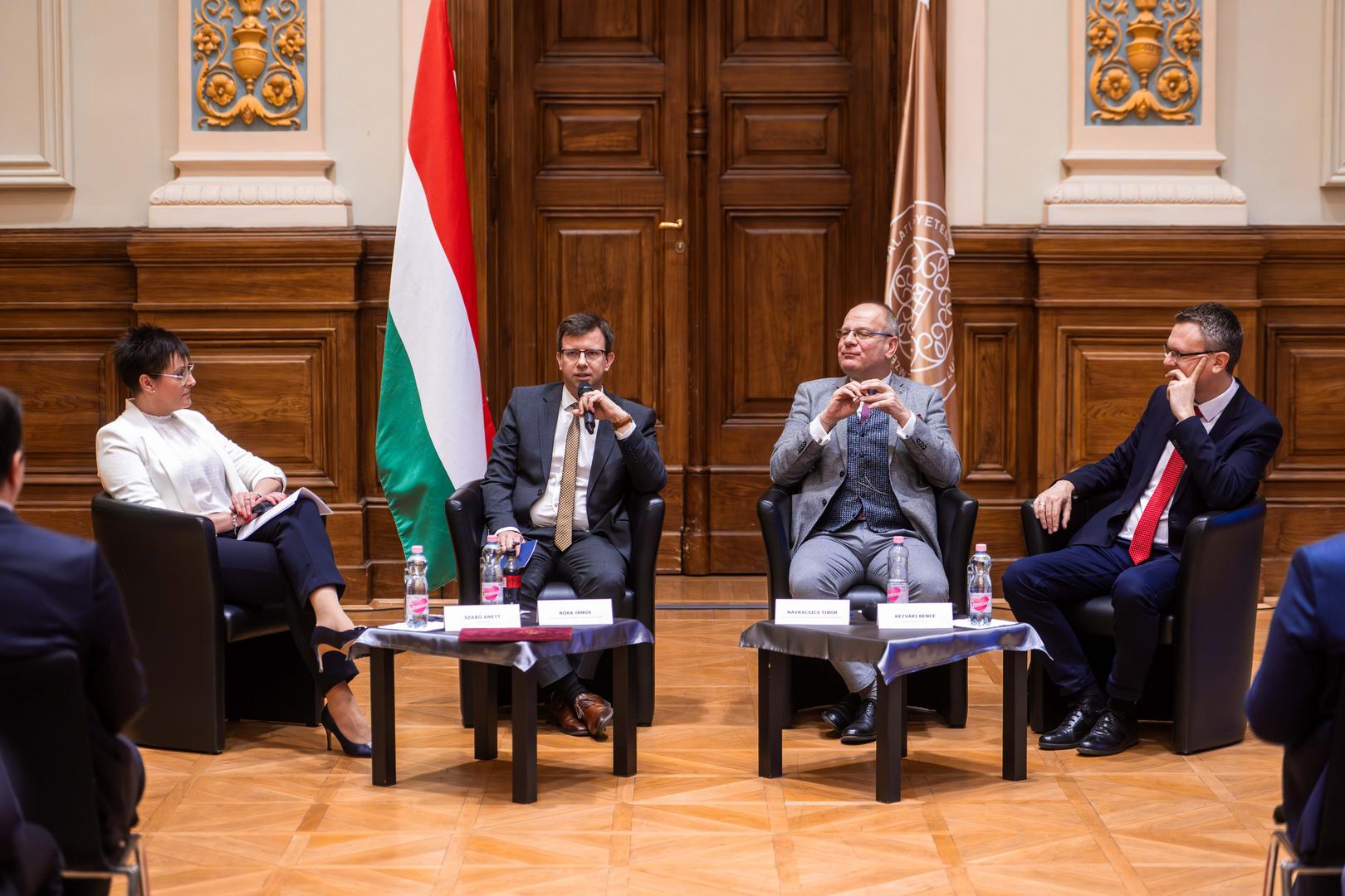 Ezt követően került sor a miniszterek kerekasztalára, amelyben Navracsics Tibor közigazgatási és területfejlesztési miniszter, Bóka János, Magyarország európai uniós ügyekért felelős minisztere, valamint Rétvári Bence, a Belügyminisztérium parlamenti államtitkára, miniszterhelyettes vettek részt Szabó Anett, az NKE sajtófőnöke moderálása mellett.