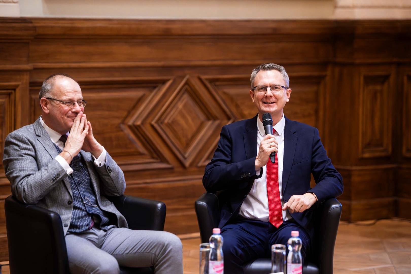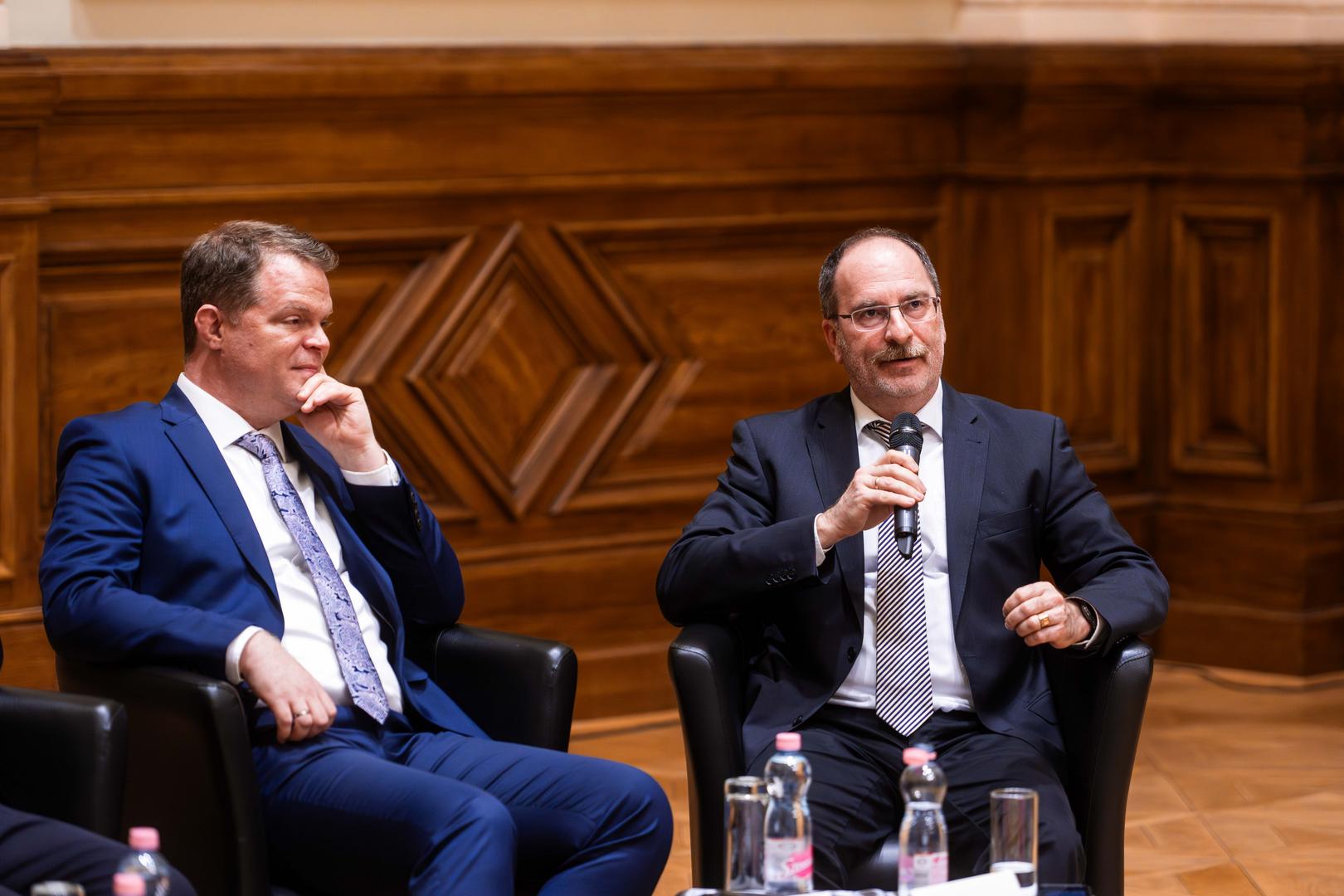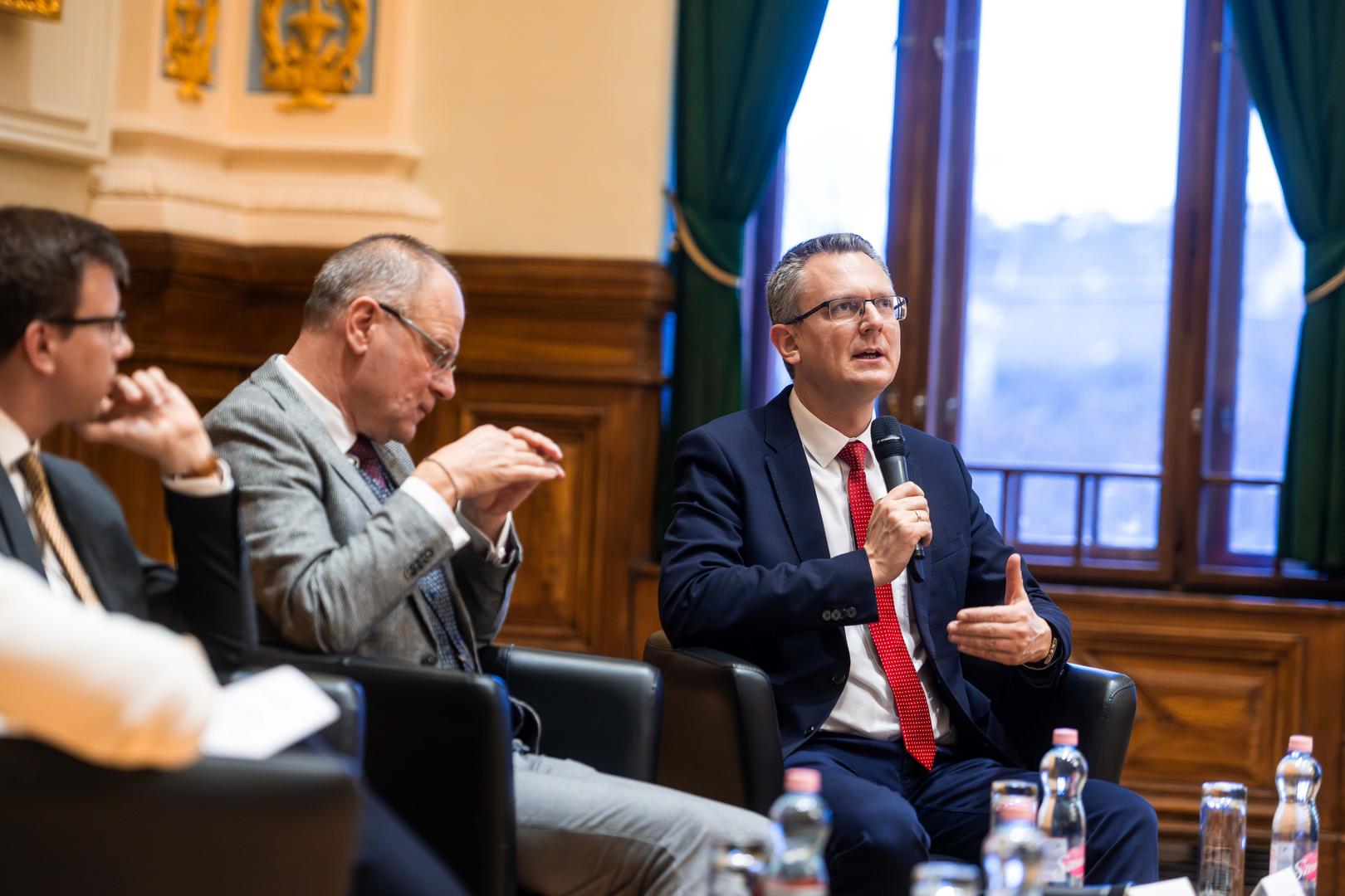 Ezt követően került sor a miniszterek kerekasztalára, amelyben Navracsics Tibor közigazgatási és területfejlesztési miniszter, Bóka János, Magyarország európai uniós ügyekért felelős minisztere, valamint Rétvári Bence, a Belügyminisztérium parlamenti államtitkára, miniszterhelyettes vettek részt Szabó Anett, az NKE sajtófőnöke moderálása mellett.