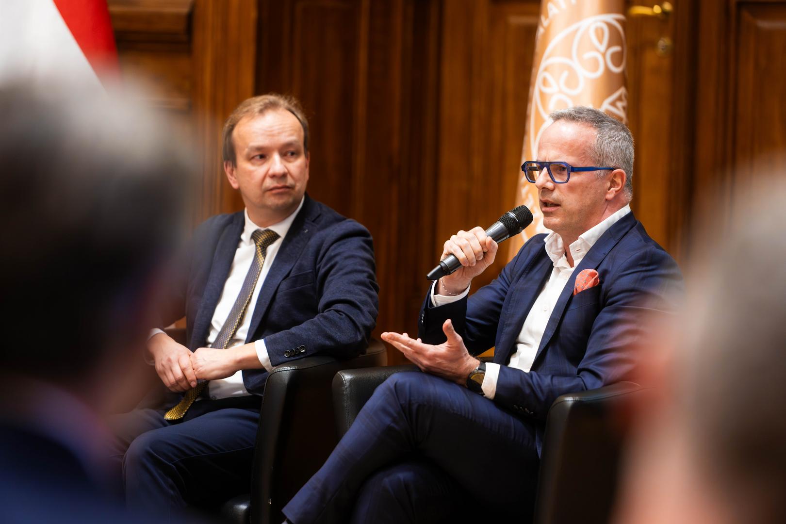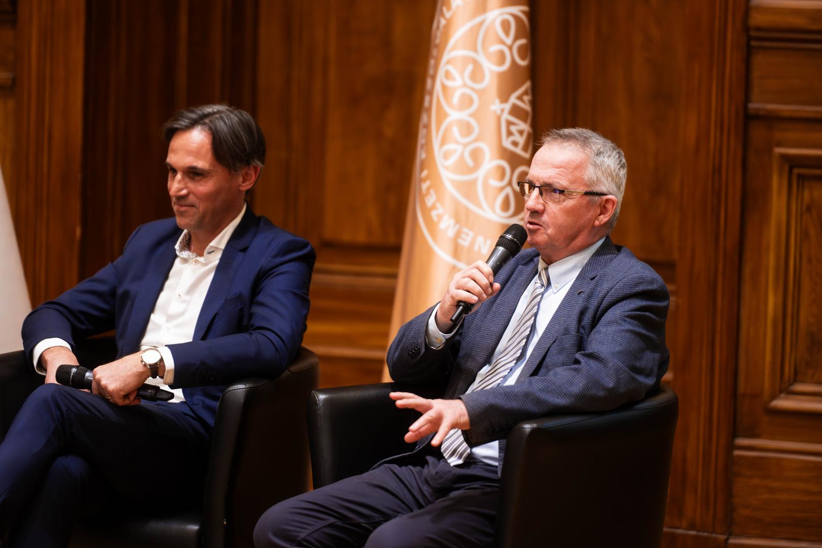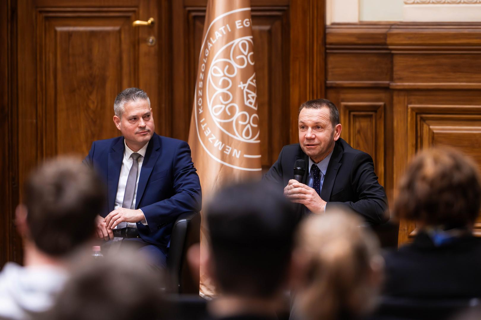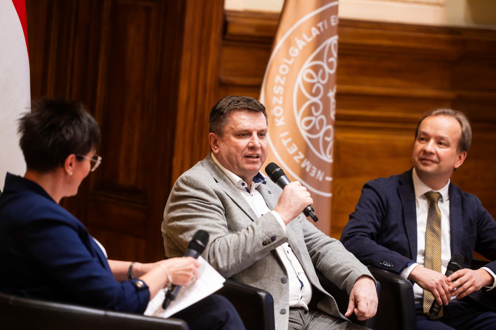 „Az NKE a 2010-ben indult új államépítésnek, az államszervezettel szembeni közbizalom megerősítésének emblematikus intézményeként létesült” – ezt már a megnyitó utáni első kerekasztal-beszélgetésen emelte ki Nyul Zoltán, az Építési és Közlekedési Minisztérium magasépítésért felelős helyettes államtitkára. A panelbeszélgetésen részt vett a felszólaló mellett Füleky Zsolt, a Miniszterelnökség politikai tanácsadója és Gyorgyevics Benedek, a Városliget Zrt. vezérigazgatója is Szabó Anett moderálásával. A résztvevők egyetértettek abban, hogy 2010-ben az állam jelentős infrastrukturális és kulturális adósságot vett át. Nyul Zoltán hangsúlyozta, hogy minden beruházásnál két szempont volt meghatározó, miszerint „semmilyen beruházás nem lehet önmagáért való és elvárható az is, hogy felfelé húzza a környezetét.” Hozzátette, hogy a beruházások nem rövid távú politikai ciklusokra, hanem évtizedekre készültek. Füleky Zsolt felsorolta azokat a nemzetstratégiai beruházásokat és fejlesztéseket, amelyek szimbolikus és történelmi jelentőségűek: a Karmelita kolostor (Miniszterelnökség) és Szent István-terem a budai királyi palotában, a Budai Vár a Hauszmann Program keretében, emellett 300 új templom építése és 2700 templomfelújítás történt meg a Kárpát-medencében. Gyorgyevics Benedek a Városliget átfogó megújításáról is beszélt részletesen. A Liget Projekt keretében megépült a Magyar Zene Háza, a Néprajzi Múzeum új épületet kapott, felújították a Millennium Házát, parkrehabilitációk és zöldfelület-fejlesztések zajlottak. A projekt részeként jött létre az Országos Múzeumi Raktározási és Restaurálási Központ, ahová több mint 600 000 műtárgy került korszerű körülmények közé. Látogatottsági adatokat tekintve a Magyar Zene Házának 1 millió látogatója volt már az első évben, ami kimagasló eredmény, ha összehasonlítjuk például a kulturális turizmus zászlóshajójával, a Szépművészeti Múzeummal, amely évente mintegy 550 000 látogatót fogad. A Városliget évente közel 16 millió látogatót számlál, amely nemzetközi kitekintésben is kiváló eredmény. Hozzátette, a Nemzeti Galéria megnyitása 2030 előtt várható, mint a Liget Projekt záróköve. Szó esett arról is, hogy a Modern Városok Program keretében országszerte új campusok, oktatási és sportlétesítmények jöttek létre: mintegy 250 projekt valósult meg, hozzávetőleg 3500 milliárd forint értékben. Ezzel párhuzamosan a Magyar Falu Program az 5000 fő alatti települések fejlesztését célozta, miközben több száz új bölcsőde-, óvoda- és iskolaépítés is megvalósult. A résztvevők kiemelték, hogy a rehabilitációk nyomán megélénkült az ingatlanfejlesztők érdeklődése, felértékelődtek a környező városrészek, valamint a kulturális beruházások kimutatható turisztikai és gazdasági megtérülést eredményeznek.