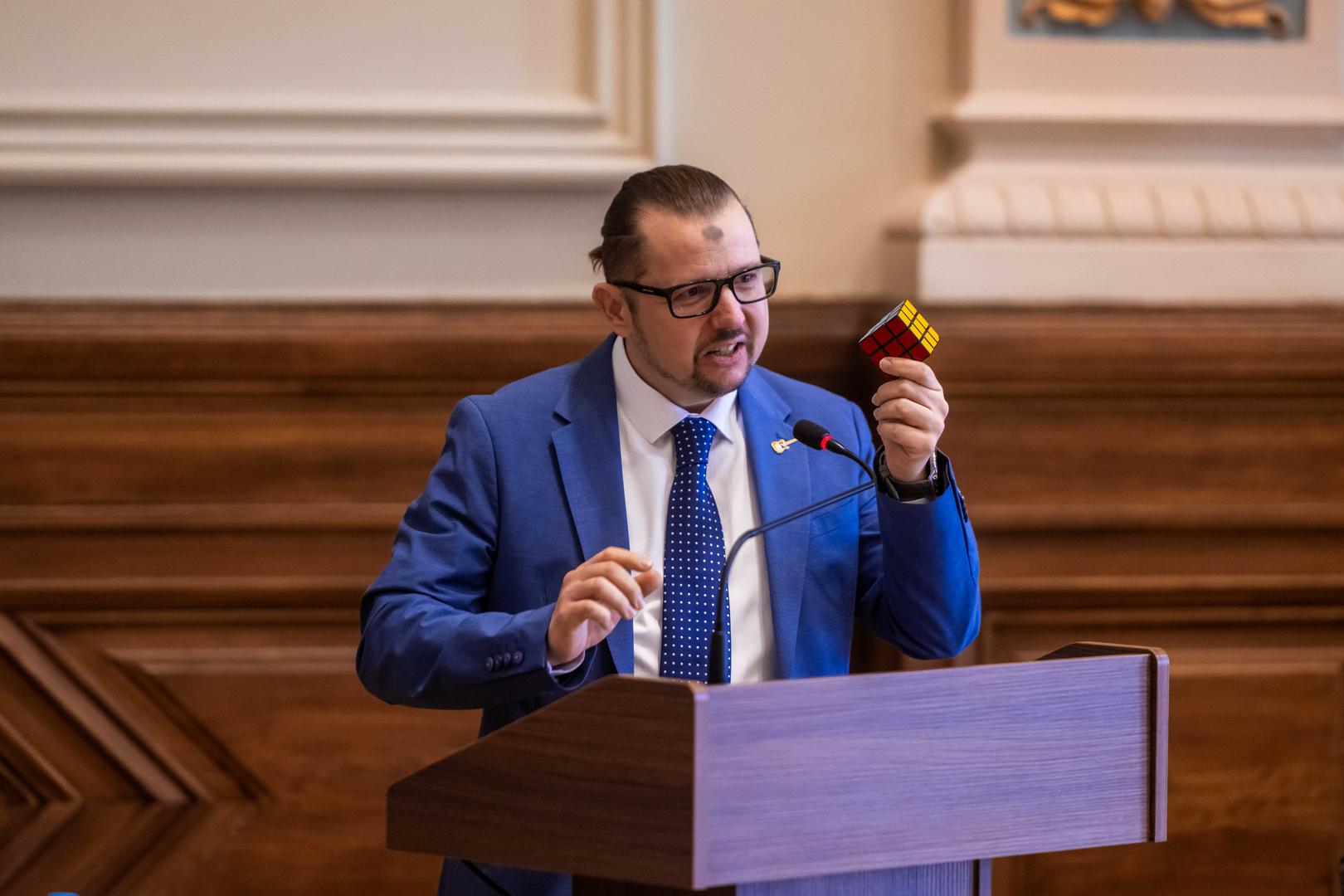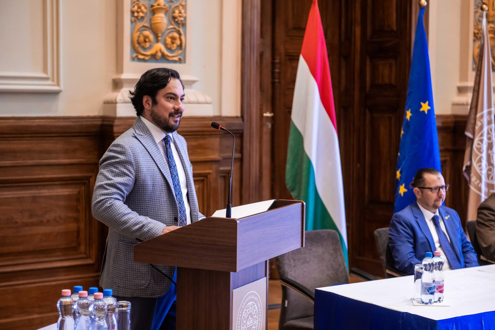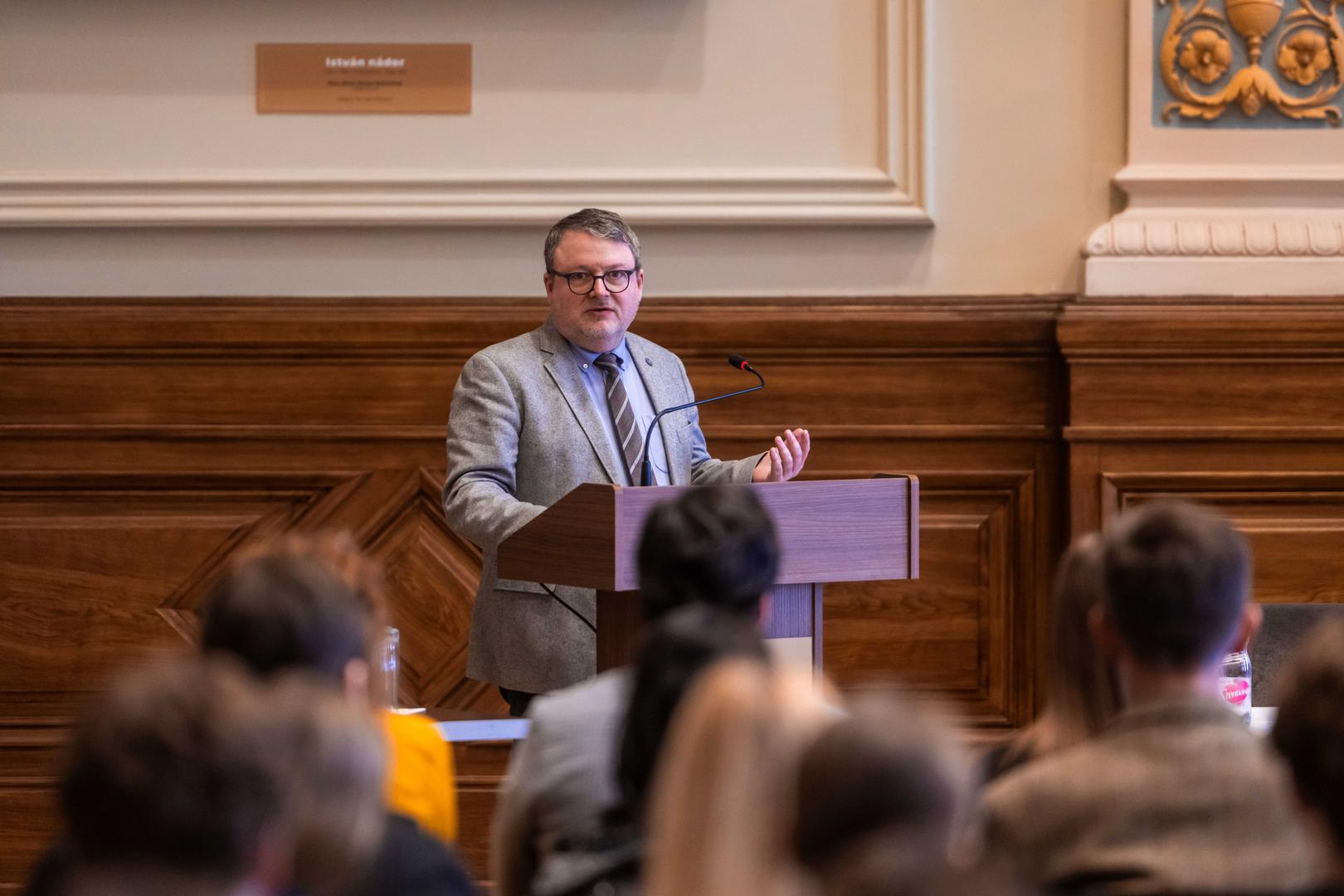 Zachar Péter Krisztián, az Államtudományi és Nemzetközi Tanulmányok Kar (ÁNTK) nemzetközi dékánhelyettese a Rubik-kocka példáján keresztül mutatta be Magyarországot és a kormányzás komplexitását. Szerinte az olyan kis országoknak, mint hazánk is, nem lehet meg az a luxusuk, hogy ne értsék a rendszereket. A kar oktatási filozófiáját így foglalta össze: „Mi nem kényelmes témákat tanítunk, hanem háborút, energiát, szuverenitást, migrációt, hatalmat.” Zárásként a komplex gondolkodás jelentőségét emelte ki: „A stratégia a nemzetközi kapcsolatok lényege.”