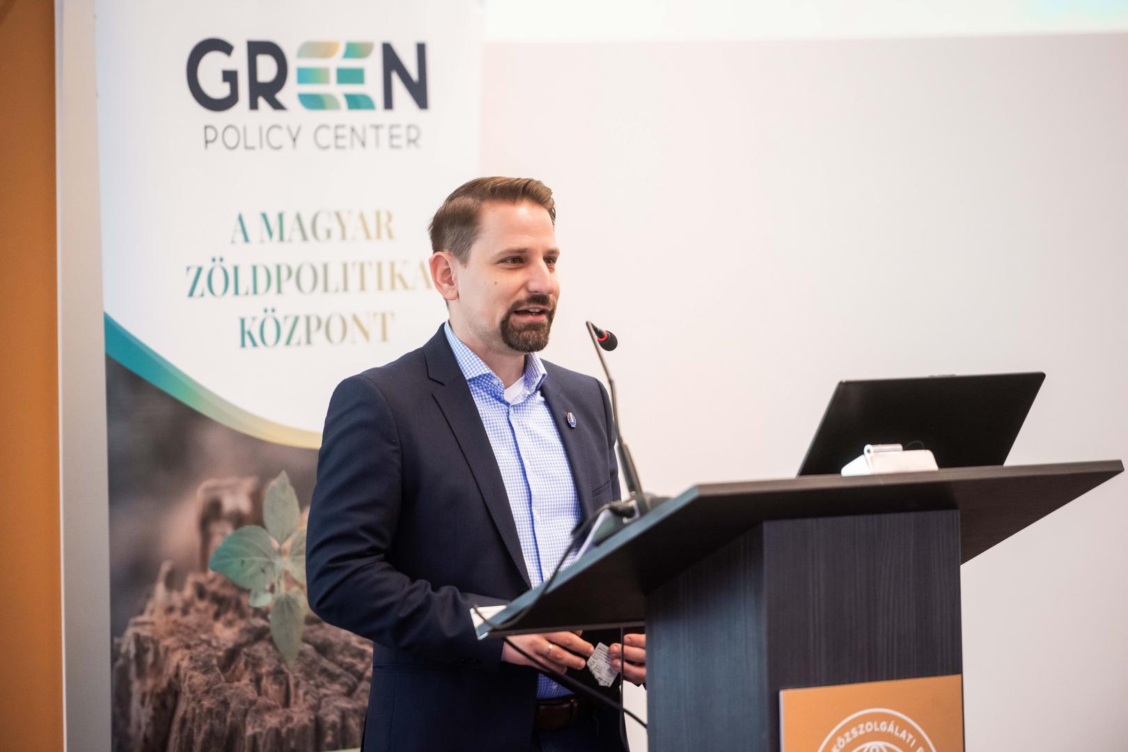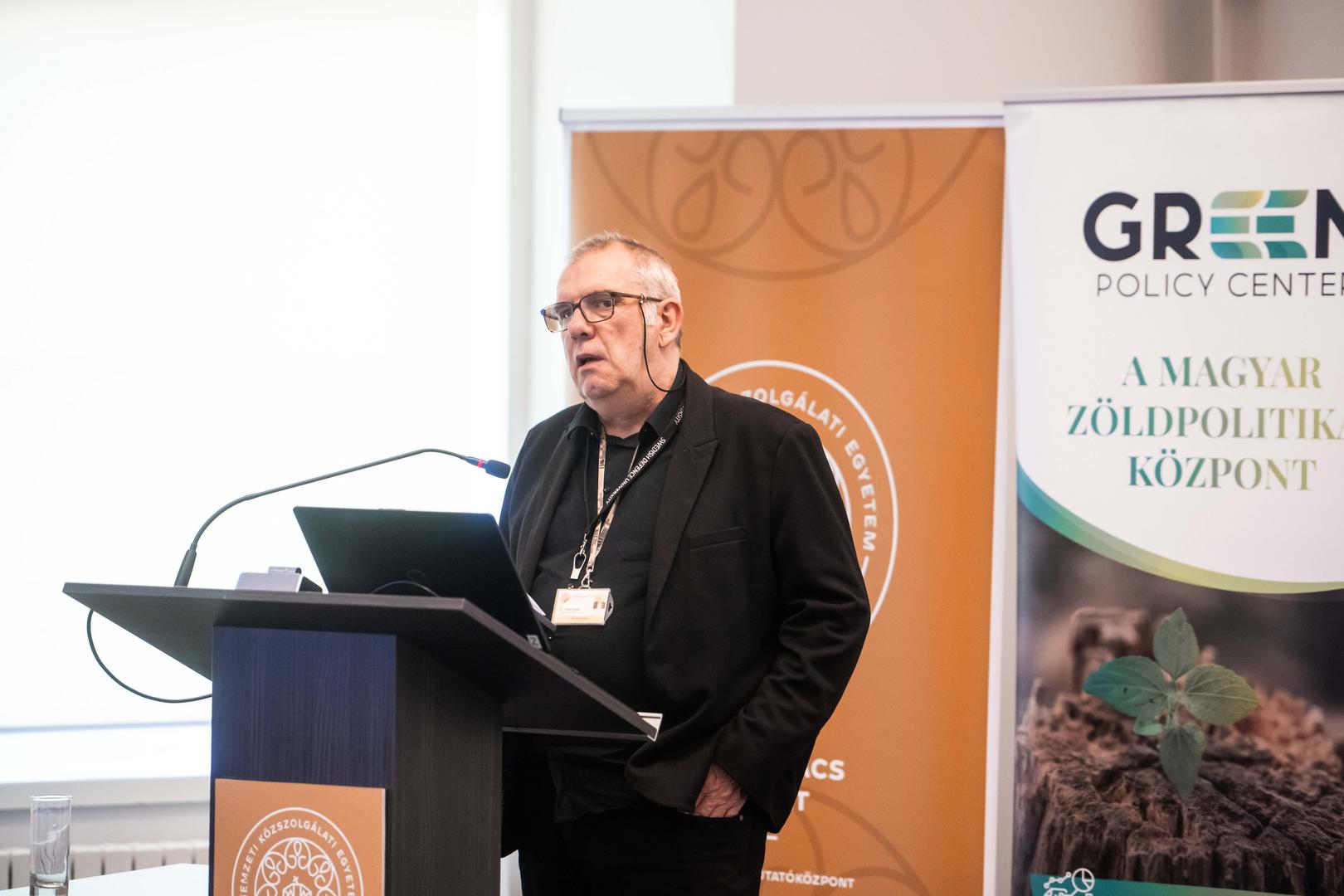Ezt követően Schaffhauser Tibor, a Green Policy Center klímapolitikai szakmai műhely társalapítója, Senior Klímapolitikai Tanácsadó ismertette az említett tanulmányt, s mutatott be szakpolitikai javaslatokat a klímabiztonság komplex kezelésére. Az előadó elsőként a globális kihívásokat és kockázatokat vette számba azok súlyossága szerint. Középtávon ezek közül az extrém időjárási események és a biodiverzitás csökkenése látszanak a leginkább valószínűnek, rövid távon azonban a dezinformációk is komoly problémát jelentenek. A klímaváltozás negatív hatásai nemcsak világviszonylatban szembeszökők: itthon 127 km/órás, rekord erősségű szél, hidegfronthoz kapcsolódó szupercellák, májusi jégeső, vegetációs tűz, villámárvíz okozta földcsuszamlás, hőhullámok és tavak kiszáradása jelzik a helyzet súlyosságát. A klímaváltozás biztonsági kérdés is – elég csak az élelmiszer- és vízbiztonságra, társadalmi destabilizációra vagy gazdasági sérülékenységre gondolni -, ezért rendszerszintű integrált döntéshozatalra van szükség, amely a jövőbeni ellenállóképességet, rezilienciát támogatja. Az ágazatokon átívelő szakpolitikai javaslatok kapcsán az említett reziliencia mellett az adatalapú kockázatkezelés fontosságára, valamint az intézményi együttműködés és a kormányzási kapacitás erősítésére is felhívta a figyelmet a szakértő. Kitért a vízgazdálkodás problematikájára is: egyszerre túl sok és túl kevés is a víz. Ennek kapcsán integrált földhasználati tervezésre, igazságos földhasználati rendszerekre van szükség, a kapcsolódó döntéseknek transzparenseknek kell lenniük, és fontos egy országos adatplatform kialakítása is.