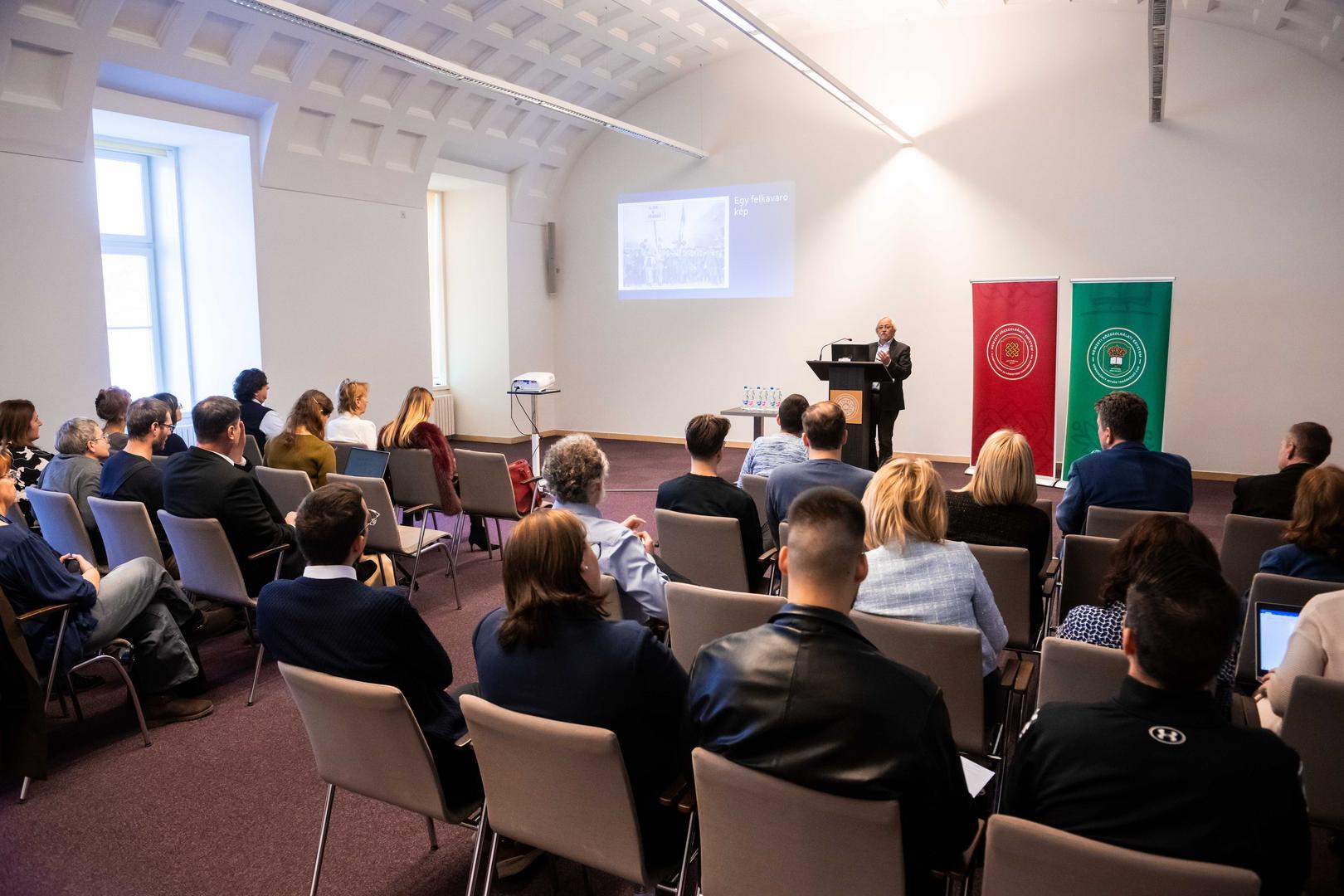 Balla János, a Váci Piarista Gimnázium tanára és az NKE Eötvös József Kutatóközpont (EJKK) képviseletében szólalt fel. Előadása történeti forrásokra, elsősorban iskolai értesítőkre épült, amelyek az intézményeket „három világ határán” elhelyezkedő térként írta le: az egyház – állam – nemzet metszéspontjában. Kiemelte, hogy a 19. század végi iskolai ünneprend egyszerre közvetített vallási, dinasztikus és nemzeti lojalitást. Az ünnepek között szerepeltek uralkodói évfordulók (Ferenc József, Erzsébet királyné), egyházi alkalmak és fokozatosan erősödő nemzeti emléknapok (március 15.). A lojalitás gyakran szimbolikus kettősségben jelent meg. Emlékeztetett: „Egyszerre lehetett tisztelni Ferenc Józsefet és ápolni a magyar nemzeti hagyományt.” Szerinte ez a pedagógiai dichotómia végigkíséri a korszakot.