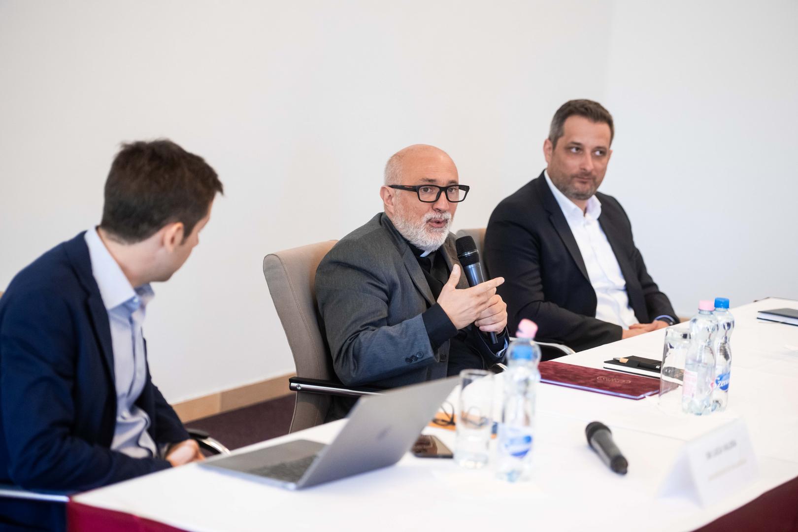 Az MI mára átlépett azon a kereten, hogy egyetlen tudományág önmagában értelmezni tudja, ugyanakkor szinte beláthatatlan társadalmi lehetőségeket hordoz – mutatott rá Federico Ponzoni, a Chilei Pápai Katolikus Egyetem professzora a konferencia megnyitójában. A nemzetközi eszmecsere első, „Belakni” a technológiákat – az etika újraértelmezése című panelbeszélgetésén Luca Valera, a Valladolid Egyetem docense adott elő, amire Török Bernát, az NKE EJKK főigazgatója és Információs Társadalom Kutatóintézetének vezetője reagált. Az ezt követő szakmai beszélgetést Federico Ponzoni, a Chilei Pápai Katolikus Egyetem professzora moderálta.