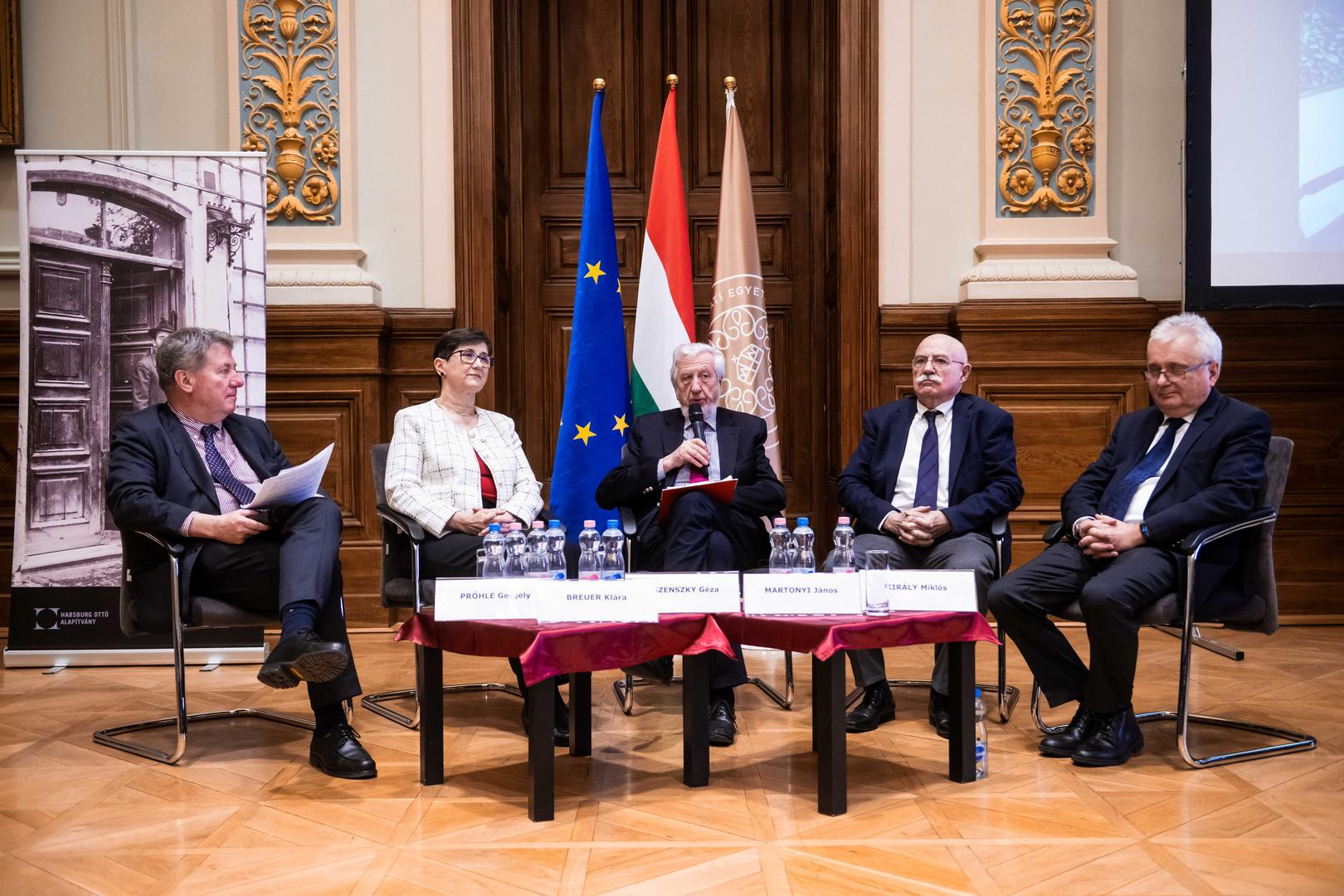 A konferencia Granasztói György tudományos öröksége című történész kerekasztalánál Fejérdy Gergely, a HOA tudományos igazgatóhelyettese, a Pázmány Péter Katolikus Egyetem (PPKE) Történettudományi Intézet Jelenkortörténeti Tanszékének adjunktusa moderálásával Czoch Gábor habilitált egyetemi docens, az Eötvös Loránd Tudományegyetem (ELTE) Történeti Intézet Atelier Interdiszciplináris Történeti Tanszék (AITT) vezetője; Klement Judit, az ELTE AITT habilitált egyetemi docense; valamint Zsinka László, a PPKE Nemzetközi és Politikatudományi Intézet egyetemi docense cseréltek eszmét.