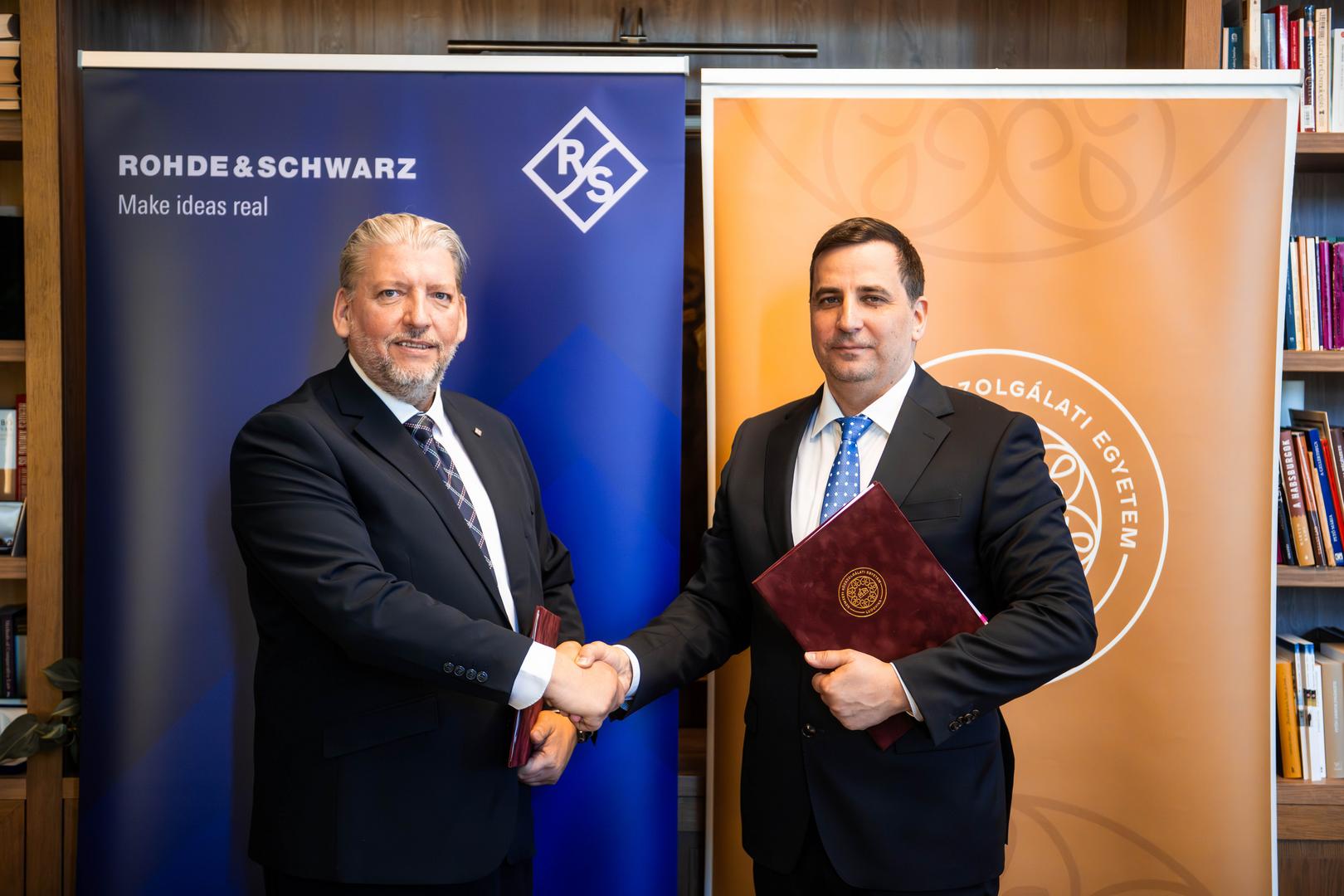 Együttműködési megállapodást írt alá Deli Gergely, a Nemzeti Közszolgálati Egyetem (NKE) rektora és Huber Szabolcs, a Rohde & Schwarz Hungária Kft. ügyvezetője március 5-én a Nemzeti Közszolgálati Egyetemen. A megállapodás mindkét fél számára a közös kutatási, fejlesztési és oktatási kooperáció első állomását jelenti.