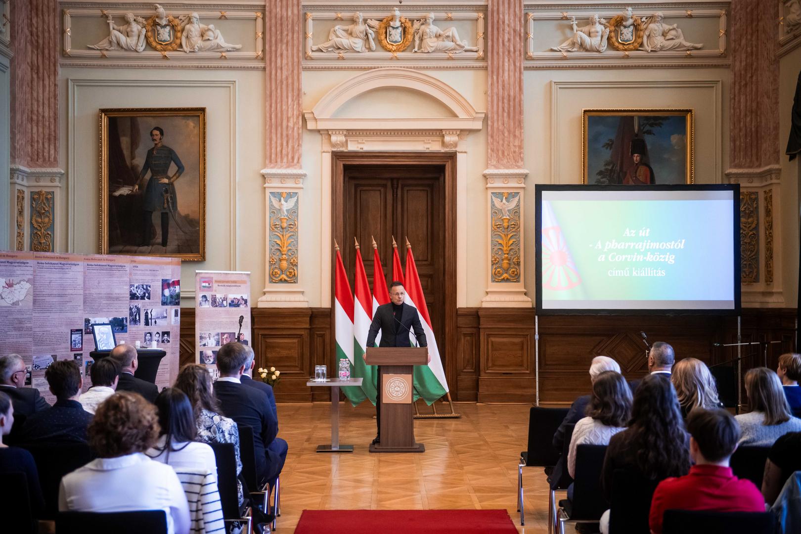 A rendezvény vendége volt Szijjártó Péter, Magyarország külgazdasági és külügyminisztere, aki beszédében köszönetet mondott az egyetemnek, amiért befogadta a kiállítást. Hangsúlyozta: a történelem tragikus eseményei fontos szerepet játszanak a nemzeti emlékezetben. „A történelem sötét napjai arra figyelmeztetnek, hogy ilyen pusztítás soha többé ne történhessen meg” – fogalmazott a miniszter. Szijjártó Péter kiemelte, hogy a világ ma veszélyes korszakot él, amelyben különösen fontos a béke megőrzése. Elmondta: Magyarország célja, hogy kimaradjon a háborús konfliktusokból, és megőrizze a békét. A tárcavezető arról is beszélt, hogy a nemzeti kormány fontosnak tartja a roma közösségek támogatását és társadalmi felemelkedését, és úgy fogalmazott, hogy a közös munka eredményeire mindannyian büszkék lehetünk. Hozzátette: az ilyen kiállítások segítenek a fiatal generációknak megérteni a történelem tanulságait és az emlékezés felelősségét.