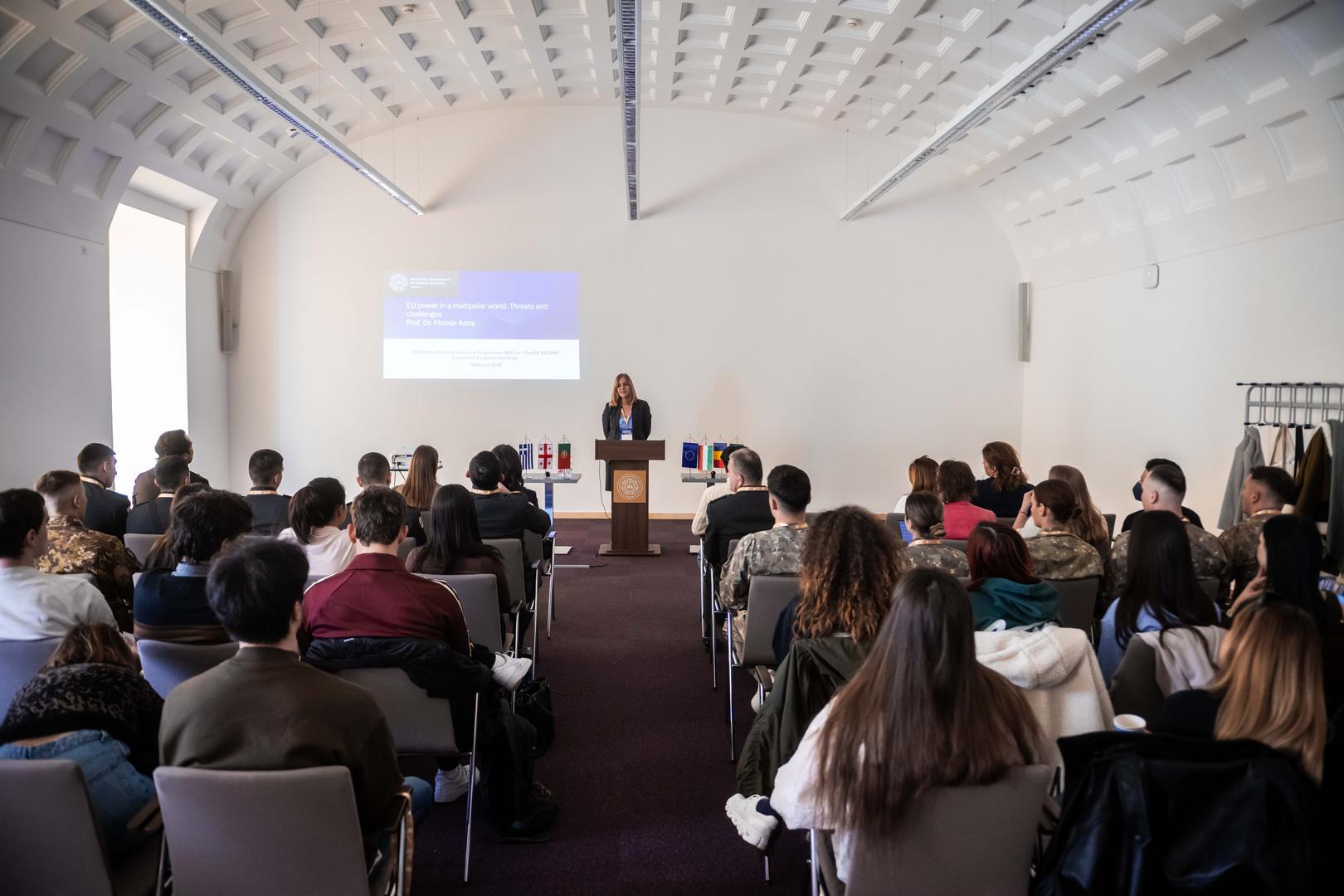 A megnyitón Molnár Anna, az NKE Nemzetközi Biztonsági Tanulmányok Tanszékének vezetője, a program szervezője hangsúlyozta: a kezdeményezés célja, hogy a hallgatók átfogóbb képet kapjanak az európai biztonság sokrétű kihívásairól. Ma a gyors geopolitikai változások és technológiai fejlődés korában a biztonság fogalma ugyanis egyre összetettebb. „A kiberbiztonságtól és az energiafüggetlenségtől kezdve a migráción, a klímaváltozáson és a hibrid hadviselésen át számos tényező határozza meg Európa biztonsági környezetét” – mondta. Az Európai Unió kulcsszerepet játszik a polgárokat és az európai értékeket védő stratégiák kialakításában.