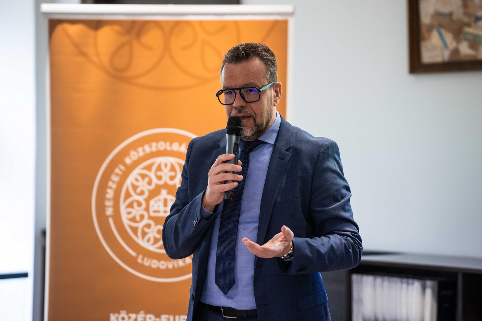 A megnyitót követően Bedők Péter történész mutatta be kutatásait, amelyek a közép-európai államszövetségek történelmi emlékezetét vizsgálták. Plenáris előadása a magyar–horvát és a lengyel–litván kapcsolatok tükrében tárta fel, hogyan alakították a 19. és 20. századi nemzeti narratívák az egykori közös államiság megítélését.