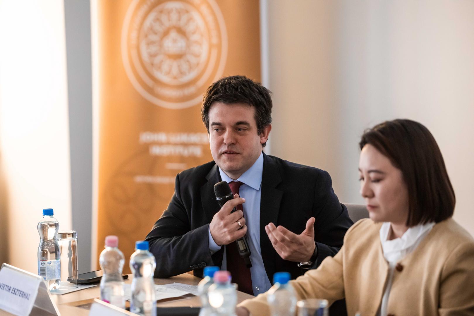 A konferencia második részében, az Eszterhai Viktor, a JLI tudományos munkatársa által moderált, Kína imázsa globális nézőpontokból című kerekasztal-beszélgetésen Rong Dan, a Guangdong Külkereskedelmi Egyetem Nemzetközi Stratégiai Intézetének óraadója; Révész Ágota, a Károli Gáspár Református Egyetem Bölcsészet- és Társadalomtudományi Kar Nemzetközi Tanulmányok Tanszékének egyetemi docense; valamint Vörös Zoltán, a JLI tudományos főmunkatársa cseréltek eszmét. Itt a legtöbb szó arról esett, hogy vajon elindult-e Kína a globális szuperhatalommá válás útján.
