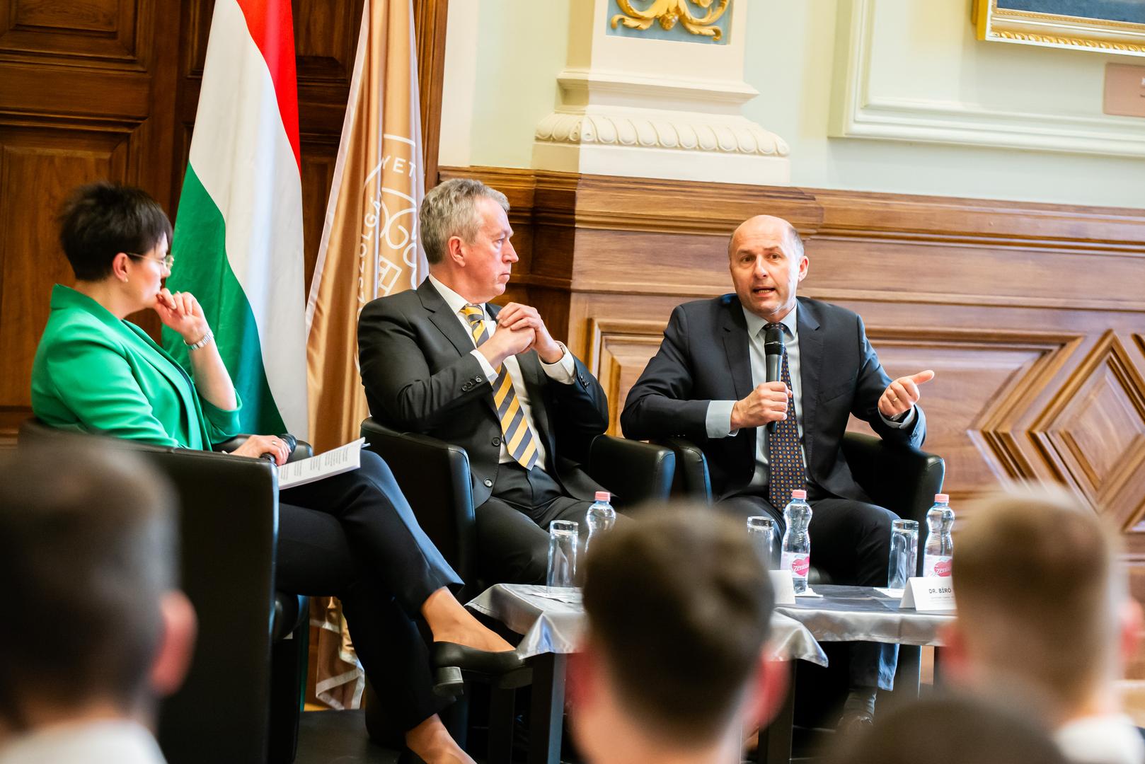 Az árvizek, a vörösiszap-katasztrófa, a klímaválság és a migráció során tanúsított, az állampolgárok megvédésére irányuló állami és társadalmi intézkedésekről szóló kerekasztal-beszélgetésen részt vett Dezső Tamás, a Migrációkutató Intézet főigazgatója és Bíró Tibor egyetemi tanár, a NKE Környezet Fenntarthatósági Intézet (KFI) intézetvezetője, Szabó Anett moderálásával. A beszélgetés kulcskérdése az volt, hogyan védi meg az állam a polgárokat a különböző krízishelyzetek során.