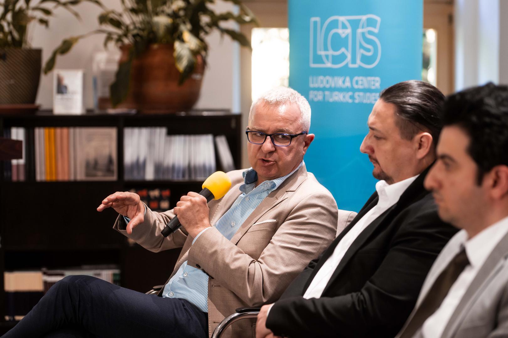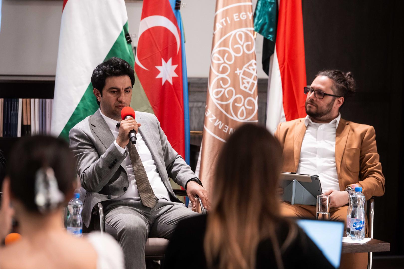A következő panelbeszélgetésen Vasif Huseynov mellett Vasa László, a Ludovika Türk Tanulmányok Kutatóműhelyének vezetője és Seremet Sándor, a Magyar Külügyi Intézet vezető kutatója vett részt. Az egyik központi kérdés Azerbajdzsán külpolitikai irányvonalának alakulása volt a függetlenség elnyerése óta. Huseynov szerint a korai posztszovjet időszakban Baku különböző modellekkel kísérletezett, előbb oroszbarát, majd nyugat- és Törökország-orientált megközelítéssel. Végül Heydar Aliyev alatt szilárdult meg az az egyensúlyozó stratégia, amely egyszerre igyekszik működő kapcsolatokat fenntartani Oroszországgal, a Nyugattal, Törökországgal és újabban Kínával is. A többvektorú külpolitika célja, hogy Azerbajdzsánt egyik nagyhatalom se tekintse fenyegetésnek.