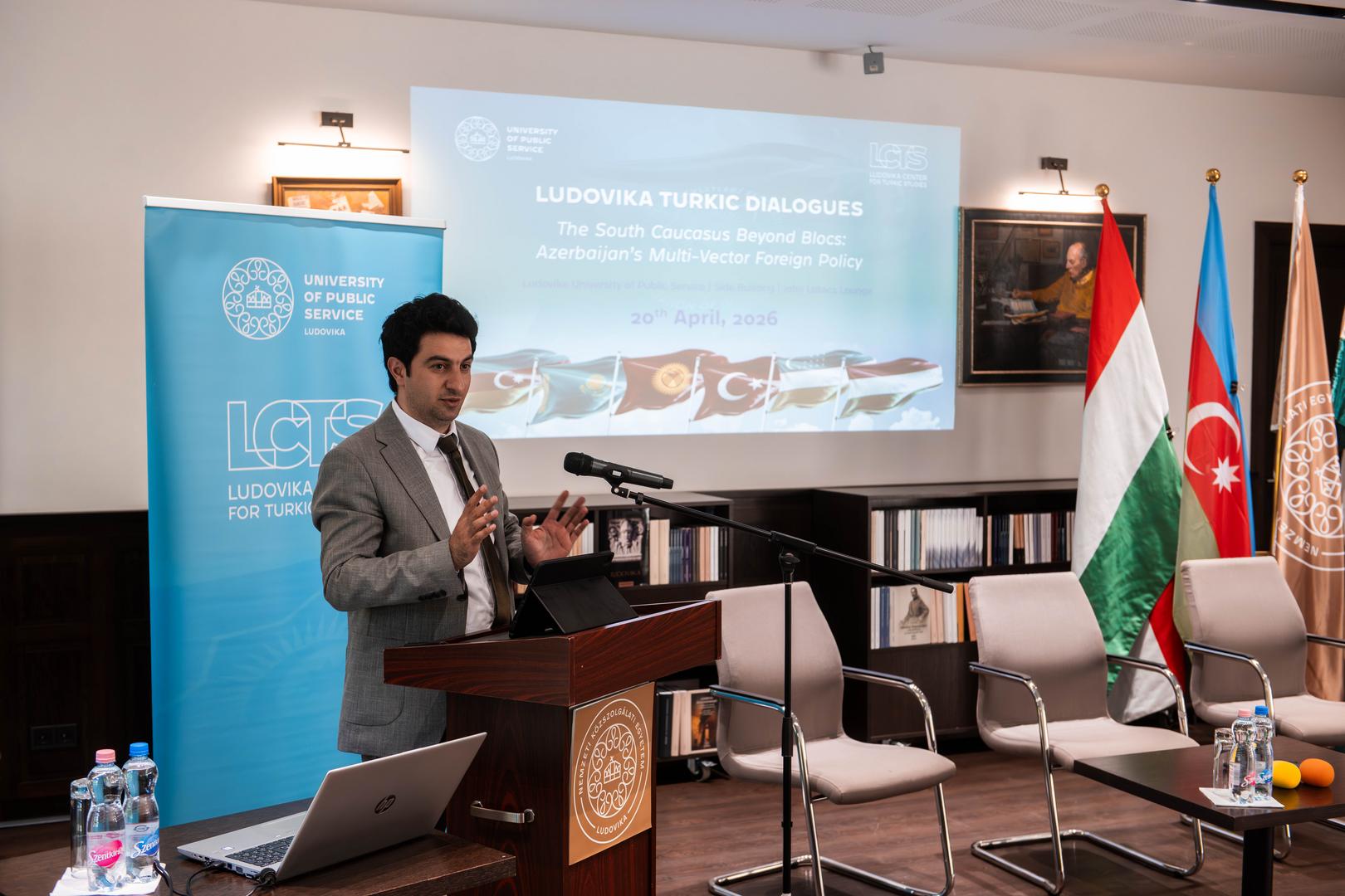 A Nemzeti Közszolgálati Egyetem (NKE) John Lukacs Társalgójában rendezték meg a Ludovika Turkic Dialogues programsorozat legújabb eseményét, The South Caucasus Beyond Blocs: Azerbaijan’s Multi-Vector Foreign Policy címmel, április 20-án. A rendezvény középpontjában Azerbajdzsán külpolitikai mozgástere, a dél-kaukázusi erőviszonyok átalakulása, valamint a magyar-azerbajdzsáni kapcsolatok fejlődése állt.