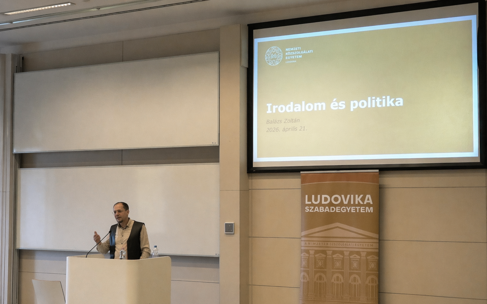 A Ludovika Szabadegyetem legújabb alkalmán Balázs Zoltán, a Budapesti Corvinus Egyetem egyetemi tanára az irodalom és a politika mélyebben összefüggéseiről tartott előadást április 21-én az NKE-n, hangsúlyozva, hogy a szépirodalom a filozófiával és a tudománnyal egyenrangú módon segíti a világ megértését. Az előadó rávilágított arra, hogy az ember alapvetően történetmesélő lény, a politika pedig egy olyan különleges terület, amelyet a tudomány még nem sajátított ki teljesen, így az irodalmi művek alapvető eszközei a politikai világképünk kialakításának. Az előadás során bemutatott elméleti keret szerint az irodalom segít a folyamatok kognitív megértésében, artikulálja a közösségi identitásokat, és alkalmanként közvetlen befolyásgyakorlással – például forradalmi célok kijelölésével – maga is a politika alakítójává válik.