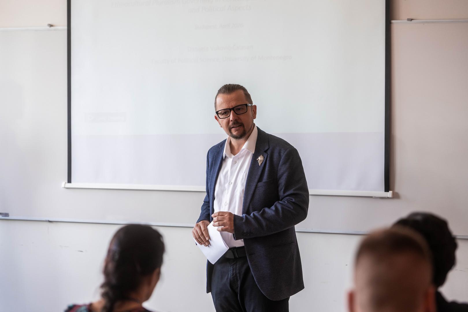 Danijela Vuković-Ćalasan, a Montenegrói Egyetem Politikatudományi Karának egyetemi docense Montenegró etnokulturális sokszínűségébe és társadalmi sajátosságaiba nyújtott betekintést április 22-én, az egyetem Oktatási Központjában.