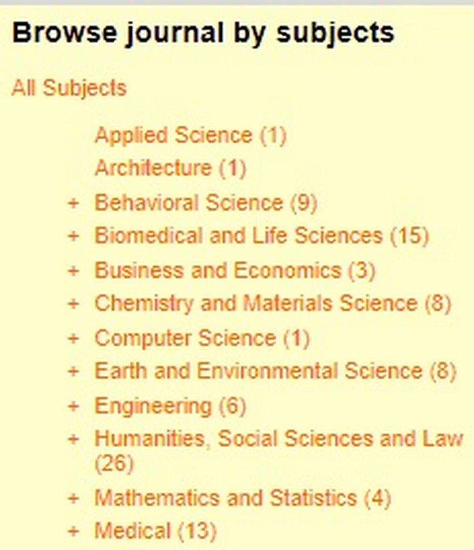 A folyóiratok között böngészhetünk tárgykörök szerint, valamint betűrendben is áttekinthetjük azokat.